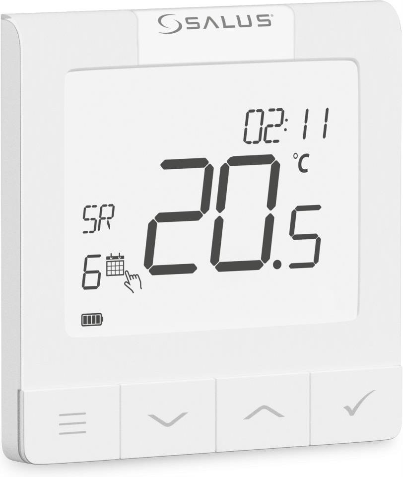 Bezprzewodowy czujnik temperatury, bateryjny WQ610 Produkt służy do przewodowego sterowania urządzeniami grzewczymi. Jego działanie polega na utrzymywaniu komfortowych warunków w pomieszczeniu, zgodnie z harmonogramem pracy lub nastawioną przez użytkownika stałą temperaturą. Podłącza się go bezpośrednio do kotła. Sterowanie może odbywać się na dwa sposoby: uruchamianie źródła ciepła poprzez zwarcie styków w urządzeniu grzewczym, wyposażonym w wejście do podłączenia termostatu ON/OFF modulacja mocy kotła za pomocą komunikacji poprzez protokół OpenTherm (OT+ 4.0). Dwustronna komunikacja pomiędzy kotłem a regulatorem oraz modulacja mocy kotła zapewnia uzyskanie maksymalnej wydajności i komfortu Cechy produktu: automatycznie wykrywa protokół OT+ 4.0 i reguluje temperaturę CWU możliwość wyboru histerezy lub wbudowanego algorytmu ITLC dla wszystkich typów ogrzewania pracuje według harmonogramów czasowych tryb serwisowy zabezpieczony kodem PIN ograniczenie temperatury maksymalnej/minimalnej może chwilowo zmieniać temperaturę (nadpisanie do następnej zmiany programu) Dane techniczne: Typ regulatora: Regulator pokojowy, sterowanie pracą kotła Zakres temperatur: 5 - 35°C Rodzaj czujnika: Wbudowany Rodzaj zasilania: 230V AC 50 Hz Kompatybilność: Bezprzewodowe sterowanie urządzeniami Salus Smart Home oraz przewodowe sterowanie urządzeniami które podpina się bezpośrednio do niego (listwy sterujące, kotły) Typ systemu: Ogrzewanie Sposób montażu: Podtynkowy Wymiary: 86 x 86 x 28 mm