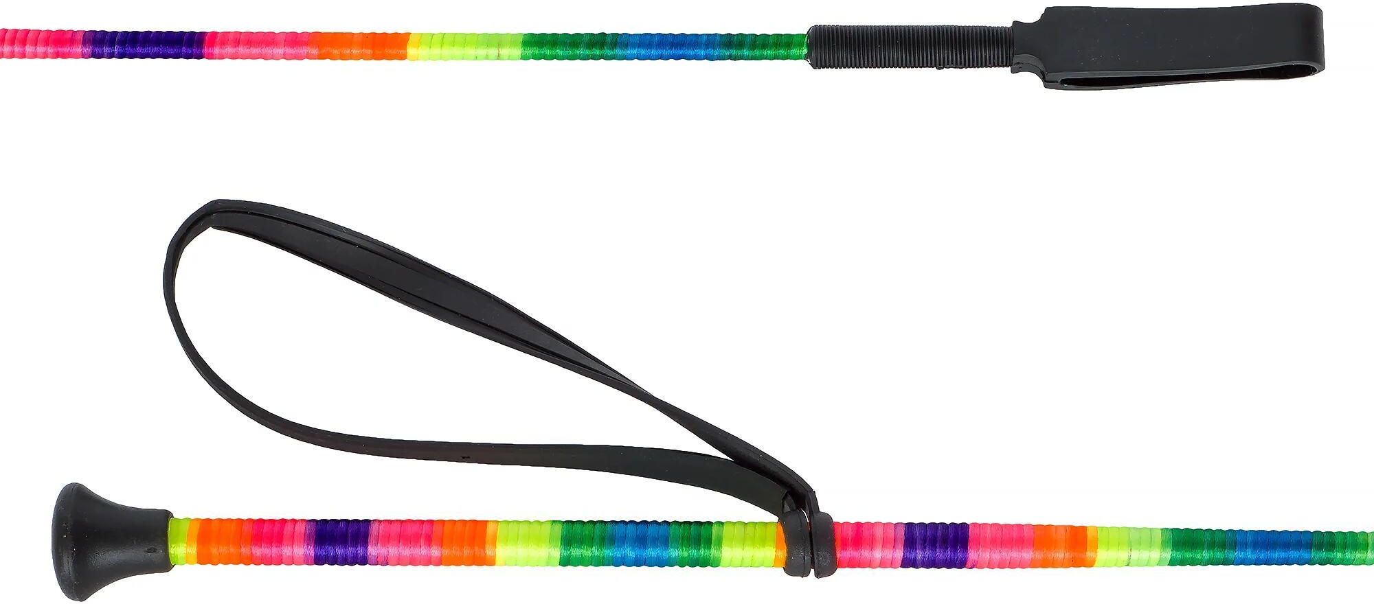 Bat palcat skokowy dla konia START String do jazdy konnej tęczowy 65 cm Palcat START String to dynamiczny dodatek do każdego ekwipunku jeździeckiego, który wyróżnia się swoim kolorowym, tęczowym designem. Ten lekki i trwały palcat jest wykonany z wytrzymałego materiału, który zapewnia elastyczność oraz wygodę użytkowania. Jego wielobarwne wykonanie nie tylko przyciąga wzrok, ale także dodaje odrobinę zabawy do codziennych treningów i jazd. Ergonomiczny uchwyt zabezpiecza palcat przed wyślizgnięciem się z dłoni, a pętelka na nadgarstek zapewnia dodatkowe zabezpieczenie i komfort. Palcat START String jest idealny dla jeźdźców w każdym wieku, którzy chcą dodać trochę koloru do swojej jeździeckiej rutyny.