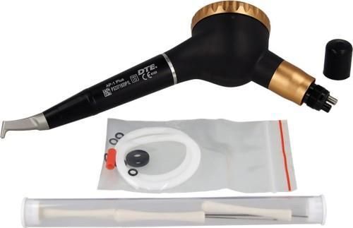 AP-H Piaskarka na rękaw turbinowy to nowoczesne narzędzie stomatologiczne, które wykorzystuje sprężone powietrze do precyzyjnego polerowania i oczyszczania powierzchni zęba. Jest to narzędzie, które stało się powszechnie stosowane w nowej erze kontroli biofilmu, oferując wydajność i komfort zarówno dla lekarza, jak i pacjenta. Zalety: - Przezroczysty pojemnik na proszek umożliwia łatwiejszą obserwację pozostałego proszku,- Bardziej skoncentrowana wydajność proszku spowodowana użyciem małej dyszy 0,7 mm,- W pełni rozbieralna trzyczęściowa konstrukcja ułatwiająca czyszczenie,- Dysza poddziąsłowa z możliwością obrotu o 360°. Dane techniczne: - Ciśnienie wody: 0,7 do 2,2 bara (70-220 kPa),- Ciśnienie powietrza: od 3,5 do 4,5 bara (350-450 kPa),- Podłączenie do rękawa: 4 otwory (Midwest 4),- Waga: około 0,150 kg.