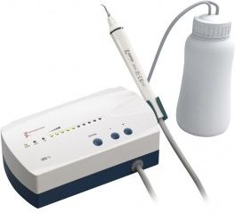 Woodpecker UDS-L - skaler ultradźwiękowy z automatyczną butlą i funkcją LED, funkcje: Skaling, perio, endo, 6 tipów Au, funkcja LED (możliwość podłączenia lampy na rękaw skalera). Zamiast rączki do skalingu można podłączyć do rękawa lampę polimeryzacyjną LED L. Po przełączeniu skalera w tryb LED odpowiednim przyciskiem lampa jest gotowa do pracy. Cechy charakterystyczne urządzenia: Usuwanie kamienia naddziąsłowego i poddziąsłowego, Usuwanie osadów (nalotu po kawie, tytoniu, płytki bakteryjnej), Leczenie endodontyczne/kanałowe, Rękojeść oraz końcówki i klucz przystosowane do sterylizacji w autoklawie, Rękojeść z możliwością odłączenia wykonana ze stopu Tytanu, Automatyczna regulacja częstotliwości, Kompatybilność ze standardem EMS, Funkcja LED (współpraca z lampą Woodpecker LED-L) Możliwość grawitacyjnego zasilania w wodę (końcówka do podłączenia kroplówki w zestawie) Cena zawiera cenę oryginalnej butli na wodę marki Woodpecker (opcja automatic water supply). W skład zestawu wchodzi: Skaler (uds-L) rękojeść (odłączana) klucz dynamometryczny do końcówek kluczyk do uchwytów do pilników włącznik nożny (pedał) przewód doprowadzający wodę 6 końcówek (G1, G2, G3, G4, P1, E1 endochuck) statyw do tipów (tip holder) zapasowe uszczelki do rękojeści (o-ringi) zasilacz kompletna dokumentacja od producenta karta gwarancyjna Instrukcja Warunki pracy : temperatura otoczenia: 5 – 40 °C wilgotność powietrza: ≤ 80% temperatura przechowywania: -10 °C do 50 °C Certyfikaty: CE, ISO, FDE (USA) Dane techniczne: Zasilanie: DC 220 V - 230 V, 50 Hz/60 Hz, 150 mA Zasilanie jednostki głównej: DC 24 V, 50 Hz/60 Hz, 1,3 A Moc wyjściowa: 3 W - 20 W Częstotliwość wibracji: 28 kHz - 30 kHz Ciśnienie wody: 0,01 MPa - 0,5 MPa Wymiary (mm): 190/125/60 Waga: 730 g Waga zasilacza: 1200 g