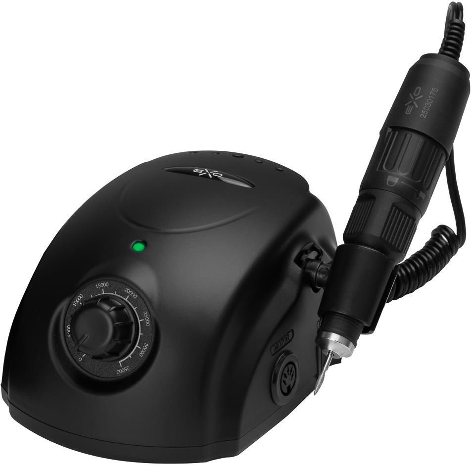 EXO to marka, która dostarcza najwyższej jakości produkty dla branży kosmetologicznej i podologicznej. Odznacza się wyjątkową dbałością o rozwój oferty, mając na uwadze zaspokajanie potrzeb klienta. Profesjonalne sprzęty i akcesoria, w tym frezarki, dzięki wysokiej jakości wykonania znacznie podnoszą komfort pracy. Frezarka z silnikiem szczotkowym Funkcjonalna frezarka EXO Runner Up z silnikiem szczotkowym sprawdza się zarówno podczas wykonywania manicure, jak i pedicure. Umożliwia szybkie przygotowanie płytki paznokcia oraz usuwanie pozostałości poprzednich stylizacji. Dobre wyważenie głowicy i przemyślane funkcje sprawiają, że praca z urządzeniem jest wydajna i wygodna. Głowica z systemem Twist-Lock Odpowiednio wyprofilowana głowica idealnie leży w dłoni, zapewniając precyzję i komfort użytkowania. Wbudowany system Twist-Lock umożliwia szybką, intuicyjną wymianę frezów, co przekłada się na płynność oraz precyzję pracy. Ergonomiczny kształt i wyważenie elementu minimalizują zmęczenie dłoni nawet przy dłuższych zabiegach. Płynna regulacja i system CLICK Frezarka wyposażona jest w pokrętło z podziałką, umożliwiające płynną regulację prędkości w zakresie od 5 000 do 35 000 obrotów na minutę. Zielona dioda sygnalizuje gotowość urządzenia do pracy. Zastosowany system CLICK zapobiega niedokręceniu pokrętła - charakterystyczne kliknięcie potwierdza prawidłowe ustawienie, chroniąc silnik przed przeciążeniem i wydłużając żywotność urządzenia. Przełączniki umieszczone na boku obudowy umożliwiają zmianę kierunku obrotów. Precyzyjne funkcjonalności dla komfortu użytkowania W zestawie znajduje się napęd nożny, który umożliwia sterowanie prędkością obrotów za pomocą siły nacisku - wystarczy podłączyć i nacisnąć, bez konieczności przełączania trybów. Ułatwia pracę, pozwalając sterować urządzeniem bez użycia rąk, co zwiększa komfort podczas zabiegów. Podczas pracy głowicę można bezpiecznie odwiesić na uchwycie z tworzywa sztucznego, który można zamontować po obu stronach bazy i pod różnymi kątami, w zależności od preferencji użytkownika. Dedykowane miejsce na frezy w obudowie pozwala na ich wygodne uporządkowanie i trzymanie pod ręką w trakcie pracy. Startowy zestaw frezów Do frezarki dołączono podstawowy zestaw frezów diamentowych, umożliwiających opracowanie skórek, przygotowanie płytki oraz pracę z masą żelową czy akrylową. Komplet zawiera również nośnik z nakładką ścierną - doskonały dla osób początkujących i przydatny do usprawnienia codziennej pracy w gabinecie. Zestaw pozwala rozpocząć pracę od razu po rozpakowaniu urządzenia, bez potrzeby dokupowania dodatkowych akcesoriów. Przemyślane rozwiązania dla komfortu pracy Klasyczna kolorystyka i minimalistyczne wykończenie sprawiają, że frezarka doskonale komponuje się z wystrojem niemal każdego wnętrza. Matowa, elegancka obudowa została wykonana z trwałych tworzyw sztucznych w odcieniach czerni - estetyczna i łatwa do utrzymania w czystości. Elastyczny, spiralny przewód do głowicy osiąga długość do około 140 cm po rozciągnięciu, natomiast przewód zasilający ma długość około 150 cm. Stabilna, dobrze wyważona konstrukcja o odpowiedniej masie w połączeniu z antypoślizgowymi elementami na spodzie zapewnia bezpieczne ustawienie urządzenia podczas pracy - nawet przy intensywnym użytkowaniu. W zestawie: baza frezarki, głowica, zasilacz, napęd nożny, plastikowy uchwyt do powieszenia głowicy, zestaw frezów, instrukcja. Dane: Kolor obudowy: odcienie czerni Prędkość obrotowa: 35 000 RPM Głowica z mechanizmem Twist-Lock Zasilanie: przewodowe Moc: 65 W Napięcie: 220-240 V