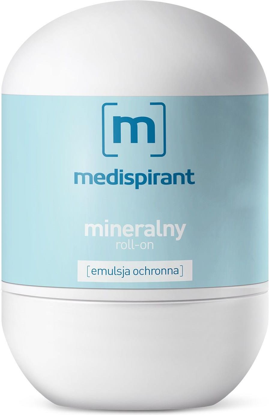Medispirant mineralny 40ml Medispirant mineralny to emulsja ochronna na bazie naturalnego, bioaktywnego minerału - ałunu, który wspiera skuteczną ochronę przed poceniem, a przy tym nie narusza naturalnej równowagi skóry. Dzięki jonom srebra preparat działa antybakteryjnie, zabezpieczając przed nieprzyjemnym zapachem. Medispirant mineralny zapewnia świeżość i poczucie komfortu.  Medispirant mineralny jest niezwykle delikatny, zawiera naturalny olejek bawełniany, który nie tylko pielęgnuje skórę, ale także chroni przed jej wysuszeniem i podrażnieniem.  Stanowi doskonały pierwszy dermokosmetyk ochronny dla dzieci, które zaczęły dojrzewać szybciej i wyczuwalne są u nich zmiany zapachu skóry, także dla nastolatków w okresie dojrzewania.  Zawiera substancje pochodzenia naturalnego.  0% alkoholu, 0% barwników