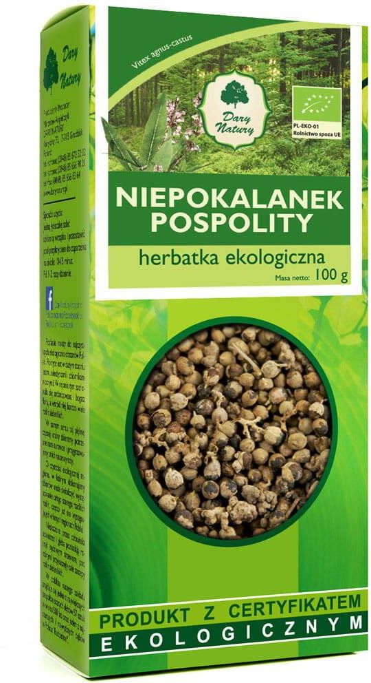 2x Niepokalanek pospolity EKO Dary Natury, 100 g Niepokalanek pospolity EKO Dary Natury, 100g to ekologiczne zioło, które od wieków jest cenione w medycynie ludowej, zwłaszcza w kontekście zdrowia kobiet. Jego właściwości wspomagające równowagę hormonalną sprawiają, że jest często wykorzystywane w terapii zaburzeń hormonalnych, takich jak nieregularny cykl menstruacyjny czy objawy menopauzy. Niepokalanek pospolity może także pomóc w regulacji poziomu prolaktyny, co jest szczególnie ważne w przypadku problemów z płodnością lub karmieniem piersią. Niepokalanek pospolity EKO Dary Natury jest doskonałym wyborem dla osób, które szukają naturalnych, bezpiecznych sposobów wspierania zdrowia hormonalnego. Produkt w opakowaniu 100g stanowi wystarczającą ilość do regularnego stosowania, zarówno w formie naparu, jak i jako składnik kapsułek czy suplementów. Najważniejsze cechy produktu Ekologiczne składniki: Pochodzi z upraw wolnych od sztucznych nawozów i pestycydów. Wsparcie zdrowia kobiet: Pomaga w regulacji cyklu menstruacyjnego, objawów menopauzy oraz wspiera zdrowie reprodukcyjne. Naturalne właściwości hormonalne: Wspomaga równowagę hormonalną, szczególnie w zakresie poziomu prolaktyny. Wysoka jakość: Wolny od chemicznych dodatków, zapewniający bezpieczeństwo i skuteczność. Niepokalanek pospolity EKO Dary Natury to zioło, które może wspomagać zdrowie i równowagę hormonalną, będąc bezpieczną alternatywą dla osób szukających naturalnych rozwiązań zdrowotnych. Skład niepokalanek pospolity nasiona* 100%. *produkt rolnictwa ekologicznego Sposób użycia Jedną łyżeczkę zalać szklanką wrzątku i pozostawić pod przykryciem do zaparzenia na około 10-15 minut. Pić 1-2 razy dziennie. Zawartość opakowania 100 g