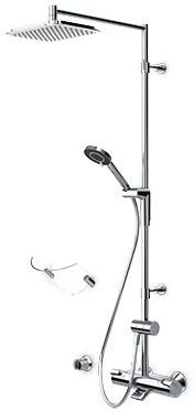 Zaprojektowany, aby robić wrażenie i zapewniać eleganckie rozwiązanie do każdej łazienki. Ten system prysznicowy typu rainshower zapewnia najbardziej komfortowe i przyjemne wrażenia pod prysznicem każdego dnia. Skupiając się na wysokiej wydajności, jednocześnie mając oko na estetykę i szczegóły, aby zapewnić łatwą instalację. Uchwyty są zaprojektowane tak, aby były eleganckie, a jednocześnie zapewniały dobry chwyt dla łatwości. Nasza nowa opracowana magnetyczna półka „MagShelf” dopełnia projekt, jednocześnie zakrywając połączenie ze ścianą. Duża i płaska głowica prysznicowa ma delikatny strumień, który pokrywa całe ciało. Ciesz się równomiernym i silnym strumieniem wody dla ostatecznego relaksu. Nasz 3-strumieniowy prysznic ręczny jest łatwy w obsłudze dzięki ładnie zaprojektowanemu przyciskowi, który umożliwia łatwą zmianę strumieni wody. Elegancki design i całkowita przyjemność Specyfikacje: -Połączenie: Połączenie bezpośrednie, Gwint wewnętrzny, Płyta(y) osłonowa(e) -Odchylacz: Przełącznik obrotowy, zintegrowany z uchwytem sterowania przepływem -Dźwignia/uchwyt: Uchwyt do regulacji temperatury, Uchwyt do regulacji przepływu, Symbole ciepła/zimna, Powierzchnia Easy-Grip, Funkcja Eco do regulacji przepływu wody -Części mechaniczne: Ceramiczna część głowicy do kontroli przepływu, Termostatyczny wkład do automatycznej kontroli temperatury, Zawór(y) zwrotny(e), Filtr(y) siatkowy(e) -Liczba funkcji natrysku: 3 funkcje natrysku -Części prysznicowe: Obrotowe połączenie kulowe, Prysznic ręczny, Blokada w pozycji środkowej, MagShelf. Wyjmowana półka z magnetycznym mocowaniem, Regulowany uchwyt drążka prysznicowego, Obrotowy prysznic górny, Wąż prysznicowy (1750 mm), Drążek prysznicowy, Technologia antykamienna (łatwe czyszczenie), Osłona skrętu węża prysznicowego, Zmienne punkty mocowania -Spray prysznicowy: Normalny - równomierny i miękki strumień wody, Masaż - silny strumień wody dzięki obrotowym dyszom natryskowym, Deszcz - równomierny i silny strumień wody -Zaawansowane funkcje: Elastyczna długość / możliwość skrócenia, Złącze węża zapobiegające skręcaniu -Rynna: Odłączany wylew -Kolor: Chrom -Temperatura: Zabezpieczenie przed poparzeniem przy 38°C. Obudowa armatury przewodzi minimalną ilość ciepła. -Przepływ ekologiczny przy 300 kPa: 0,12 l/sek -Przepływ przy 300 kPa: 0,22/0,22 l/sek -Strata ciśnienia przy przepływie (0,2 l/s): 250 kPa -Zapobieganie cofaniu się przepływu (EN1717): EB -Rozmiar połączenia: G3/4 -Dostawa ciepłej wody: maks. +65°C -Szerokość instalacji: 150 ± 3 mm -Tworzywo: Mosiądz/Plastik -Występ: 131 mm -Ciśnienie robocze: 100 - 1000 kPa