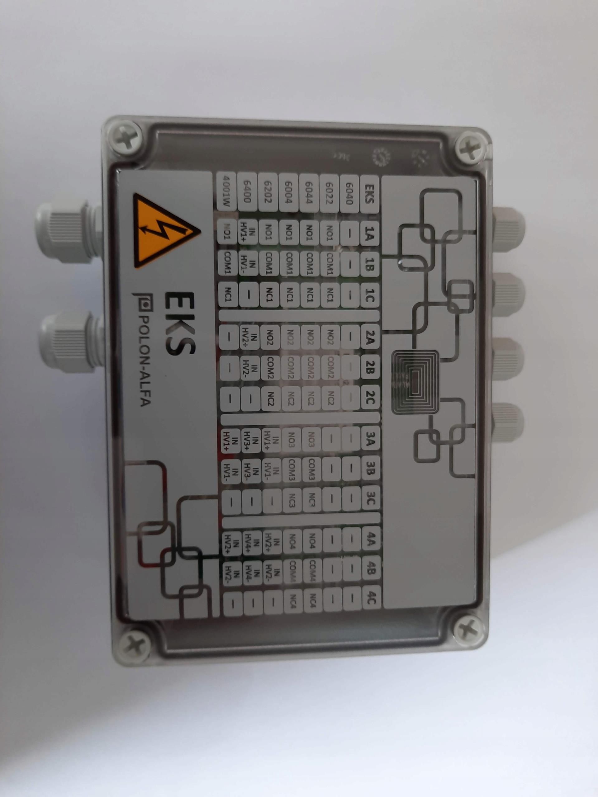 Element EKS-6022 wyposażony w 2 wejścia niskonapięciowe, 2 wyjścia. Uniwersalne elementy kontrolno-sterujące EKS-6000 są elementami adresowalnymi, przeznaczonymi do: sterowania automatycznych urządzeń zabezpieczających, przeciwpożarowych kontroli zadziałania ww. urządzeń kontroli stanu dowolnych urządzeń. Wyjścia przekaźnikowe elementów EKS-6000 mogą być zastosowane zarówno przy sterowaniu napięciem 24 VDC (max 60 W) jak i 230 VAC (max 62,5 VA). Ponadto EKS-6000 w wersji 6222P ma możliwość sterowania dużymi mocami (12 A przy 230 VAC). Wejścia niskonapięciowe (NN) elementu EKS-6000 umożliwiają podłączenie niezależnych, bezpotencjałowych zestyków normalnie zwartych albo normalnie rozwartych. Wejścia wysokonapięciowe (WN) elementu EKS-6000 umożliwiają podłączenie niezależnych, zestyków przy napięciu do 230 VAC lub 220 VDC. Element przystosowany jest do pracy wewnątrz i na zewnątrz obiektów. Element kontrolno-sterujący EKS-6000 przewidziany są do pracy w adresowalnych liniach dozorowych central sygnalizacji pożarowej POLON 6000. Typ Elementy sterujące Liczba wejść kontrolnych 2 Liczba wyjść sterujących 2 Inicjacja wejścia kontrolnego styk bezpotencjałowy NO lub NC Funkcja "fail safe" tak Szczelność obudowy IP 66 Zakres temperatur pracy od -40°C do 85°C Wymiary w obudowie 1xEKS - 202x180x74mm Masa w obudowie 1xEKS - 0.5 kg Elementy kontrolno-sterujące EKS-6000 dostępne są w siedmiu odmianach konfiguracyjnych oznaczonych tak jak podano poniżej: 1. EKS-6040 - wyposażony w 4 wejścia niskonapięciowe, 2. EKS-6004 - wyposażony w 4 wyjścia, 3. EKS-6022 - wyposażony w 2 wejścia niskonapięciowe, 2 wyjścia, 4. EKS-6044 - wyposażony w 4 wejścia niskonapięciowe, 4 wyjścia, 5. EKS-6202 - wyposażony w 2 wejścia wysokonapięciowe, 2 wyjścia, 6. EKS-6400 - wyposażony w 4 wejścia wysokonapięciowe, 7. EKS-6222P - wyposażony w 2 wejścia niskonapięciowe, 2 wejścia wysokonapięciowe i 2 wyjścia sterujące dużej mocy (12A/230 VAC),