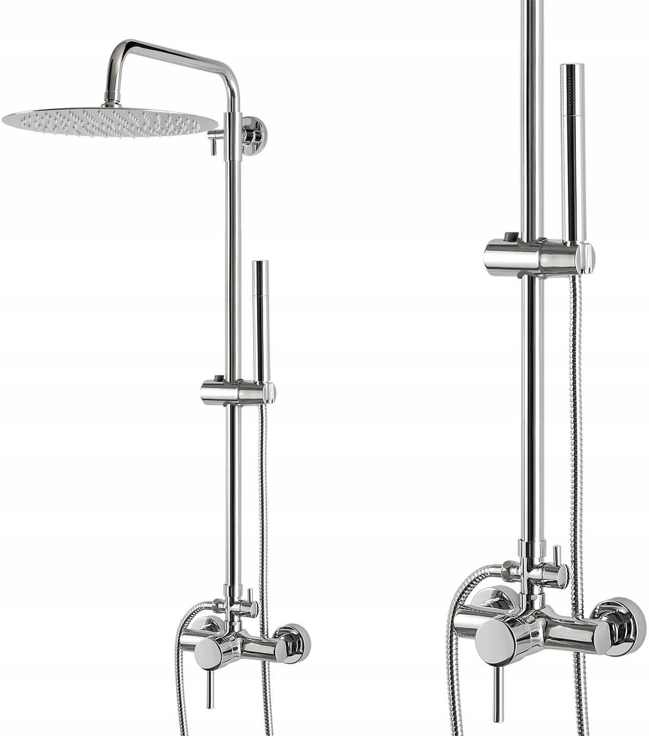 Kolumna prysznicowa ZN0333 Polskiej Marki - INEA SKU: ZN0333 Specyfikacja: SKU: ZN0333 Materiał: Mosiądz / stal nierdzewna Producent: INEA Gwarancja: 24 m-ce Wysokość: 82-124 cm Typ: Ścienny Kolor: Srebrny Ilość funkcji: 2 Stan: Nowy Deszczownica: DN0301 ( 30 cm stal nierdzewna - Ultra Slim) Słuchawka: AL33 ( Mosiężna ) Kolumna prysznicowa z baterią. Kolumna prysznicowa z baterią stanowi doskonałe rozwiązanie zarówno do kabin prysznicowych, jak i wanien z parawanem. Prosta budowa oraz subtelne kształty chromowanych elementów idealnie wpisują się minimalistyczne, jak i tradycyjne wnętrza łazienek. Wykończenie o gładkiej strukturze ułatwia utrzymanie czystości. Korpus kolumny wykonany z chromowanej stali nierdzewnej zapewnia długie bezawaryjne użytkowanie zestawu. Regulowana wysokość korpusu daje możliwość ustawienia deszczownicy w zakresie między 82 cm a 124 cm. Kolumnę prysznicową wyposażono w baterię jedno-uchwytową. Dołączony do zestawu przełącznik funkcji łączący baterię z drążkiem pozwala na zmianę funkcji natrysku z deszczownicy na słuchawkę. Kompletny zestaw stanowią drążek prysznicowy z deszczownicą i przełącznikiem funkcji, słuchawka prysznicowa z wężykiem oraz baterią. Dwie mosiężne krzywki (redukujące z 3/4 na 1/2 cala) dołączone do zestawu, dają możliwość montażu baterii przy rozstawie przyłączy od 13cm do 17cm (mierząc wymiary od środka do środka). Deszczownica W tym zestawie natryskowym znajduje się deszczownica o średnicy 30 cm. Deszczownica wykonana jest ze stali nierdzewnej o grubości 1 mm a sama krawędź to jedynie 2 mm grubości. Dysze wyposażone zostały w silikonowe zakończenia z systemem Anti-Calc zapobiegające osadzaniu się kamienia z twardej wody, system ten gwarantuje drożność dysz nawet po długim okresie użytkowania. Słuchawka prysznicowa Zestaw zawiera także solidną, mosiężną chromowaną słuchawka prysznicowa. Jest ona dopasowana designem do całości zestawu. Słuchawka posiada odkręcaną głowicę. Ułatwia to znacząco czyszczenie i usuwanie wszelkich nagromadzonych wewnątrz słuchawki osadów. Dzięki temu można utrzymać drożność dysz. W zestawie znajduje się także wąż prysznicowy o długości 150 cm. Rysunek techniczny z wymiarowaniem