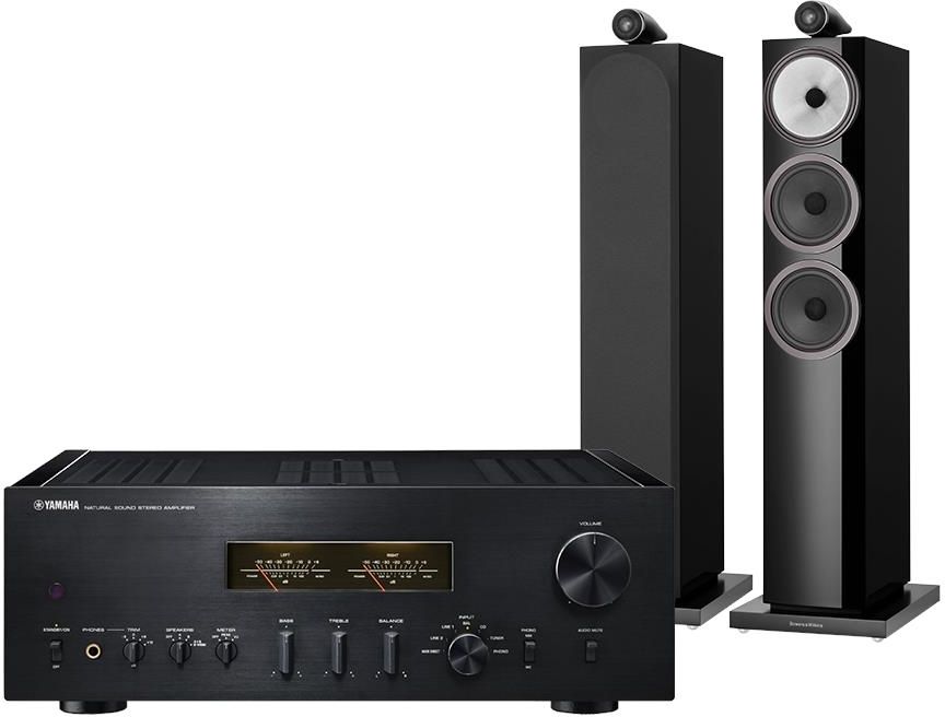 Zestaw stereo składający się ze wzmacniacza zintegrowanego Yamaha A-S2200 oraz głośników wolnostojących Bowers & Wilkins 703 S3