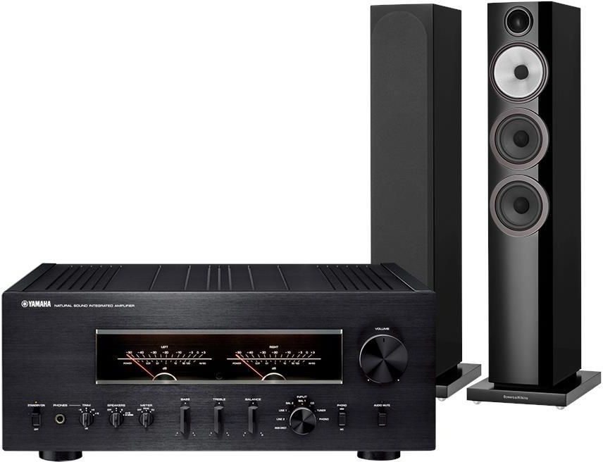 Zestaw stereo składający się ze wzmacniacza zintegrowanego Yamaha A-S3200 oraz głośników wolnostojących Bowers & Wilkins 704 S3
