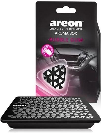 AREON Aroma Box GUMA BALONOWA ABC02 BUBLE GUM Odświeżacz Aroma Box to produkt, w którym zastosowane są takie same rozwiązania jak w Areon Ken. Jednak jak wskazuje sama nazwa, Aroma Box ma kształt płaskiego pudełeczka ale jest zdecydowanie większy od Areon Ken. Odświeżacz samochodowy Aroma Box to popularne zapachy o podwójnej objętości i dwa razy większa trwałość. Sprawdzi się przede wszystkim w dużych samochodach, w samochodach ciężarowych oraz w sporych pomieszczeniach – wszędzie tam gdzie potrzebna jest podwójna dawka zapachu.