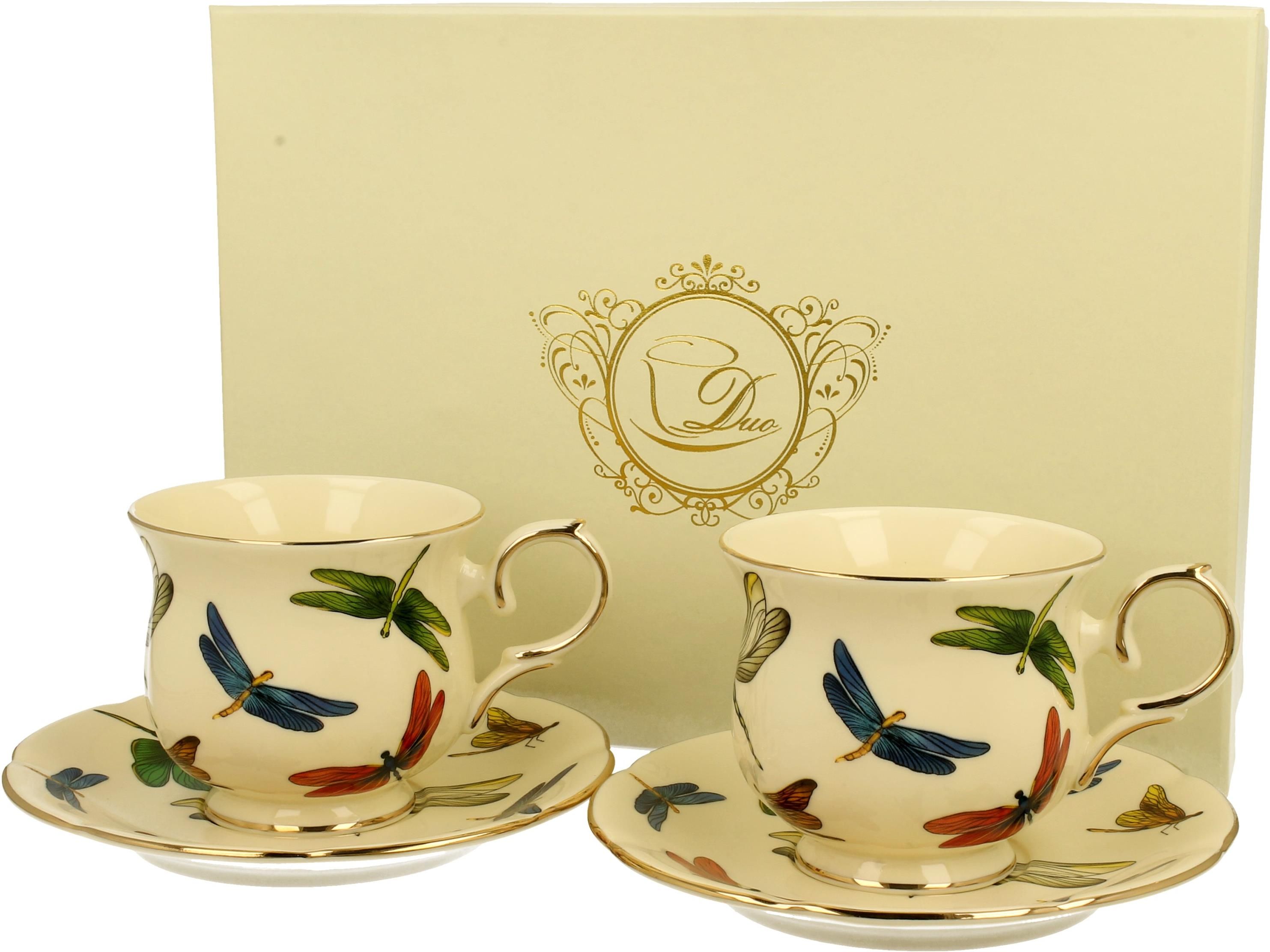 Duo Filiżanki Do Kawy I Herbaty Porcelanowe Ze Spodkami Ecru 260 Ml 2 Szt. (3752) Suchowola