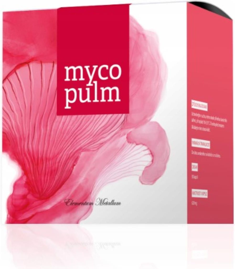 Składniki: Ekstrakt uszaka bzowego (Auricularia auricula-judae), kapsułka roślinna (HPMC), ekstrakt z żagwi wielogłowej (Polyporus umbellatus), ekstrakt z perzu własciwego (Elymus repens), ekstrakt z płomiennicy zimowej (Flammulina velutipes), ekstrakt z dzwonkowca kosmatego (Codonopsis pilosula), stabilizator – sole magnezowe kwasów tłuszczowych. W 1 kapsułce: ekstrakt z uszaka bzowego 140 mg, ekstrakt z żagwi wielogłowej 117 mg, ekstrakt z perzu właściwego 93 mg, ekstrakt z płomiennicy zimowej 82 mg, ekstrakt z dzwonkowca kosmatego 58 mg. Masa netto: 90 kapsułek. Właściwości: Moc i synergia starannie zbilansowanego kompleksu rzadkich grzybów i ekstraktów ziołowych. Zgodnie z metodą TCM, Mycopulm należy do elementu Metalu, a tym samym wzmacnia drogę płuc i jelita grubego. Zalecane dzienne spożycie: 1 kapsułka 3 razy dziennie. Przeciwwskazania: Nadwrażliwość na którykolwiek ze składników preparatu. Nie stosować u dzieci! Stosowanie produktu w okresie ciąży i karmienia piersią należy skonsultować z lekarzem. Nie należy przekraczać zalecanej porcji do spożycia w ciągu dnia! Spożywać przez trzy tygodnie; po tym okresie należy zrobić siedem dni przerwy. Podczas spożywania zaleca się zwiększenie przyjmowania płynów. Przechowywanie: Przechowywać w suchym miejscu w temperaturze 10 –25 stopni C. Producent: Energy Poland Sp. z o.o. ul. 11 Listopada 60, 43-300 Bielsko-Biała,