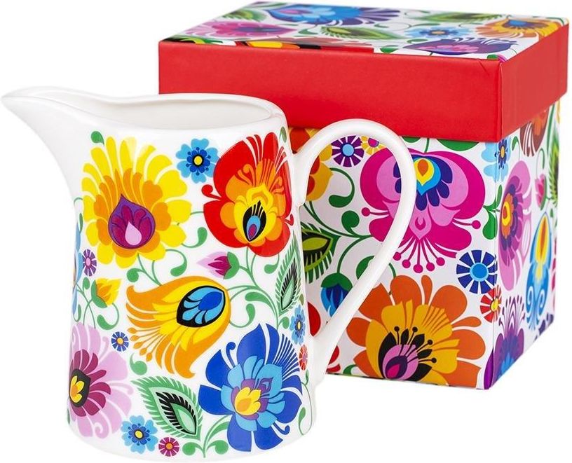 Mlecznik Mietek - łowicki biały Mlecznik Mietek - łowicki biały to dodatek bez którego nie obejdzie się Twoja poranna kawa. Wykonany z ceramiki, ozdobiony najpiękniejszymi wzorami ludowymi stanie się idealnym dodatkiem do Twojej folkowej kolekcji. Świetnie sprawdzi się zarówno w towarzystwie filiżanek jak i kubeczków. Mlecznik Mietek - łowicki biały: Idealny na prezent Wywoła uśmiech na twarzy obdarowanego Doda koloru Twojej kuchni Dzięki niemu kawa smakuje jeszcze lepiej Ozdobiony wzorem inspirowanym łowickimi wycinankami Zapakowany w eleganckie ozdobne pudełko Pasuje do łowickich filiżanek, dzbanka i kubków Wzór: łowicki Wykonany z porcelany Pojemność: 310 ml Wysokość: 10 cm Można myć w zmywarce Można używać w mikrofalówce Zapakowane w kartonowe pudełko o wymiarach: 11 x 8,5 x 11 cm