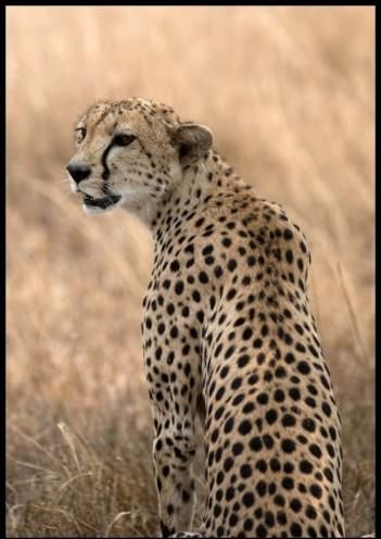 Fotografia siedzącego geparda na tle roślinności sawanny. Do plakatu nie jest dołączona ramka. *PLAKAT NIESPODZIANKA - to dowolny plakat z naszej kolekcji, w dowolnym wymiarze, jednak nie większy niż zamówiony rozmiar. Plakat konfekcjonowany jest losowo, dlatego nazywa się niespodzianka. My również nie wiemy, jaki wzór do Ciebie trafi. Jednak każdy lubi niespodzianki, dlatego możemy śmiało stwierdzić, że to oczekiwanie sprawi niesamowitą radość.
