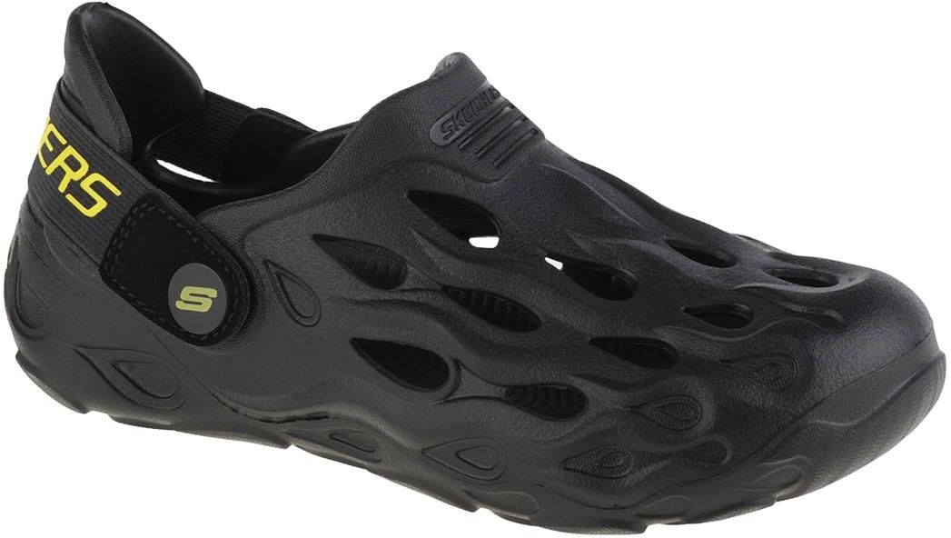 Fason: półbuty. Kolor: Czarne. Materiał cholewki: Materiał syntetyczny. Materiał podeszwy: Materiał syntetyczny. Profil: Neutralny. Przeznaczenie: do wody. Rodzaj: Dziecięce. Rodzaj wnętrza: Materiał syntetyczny. Sezon: na cały rok. Typ zapięcia: wsuwane. Wysokość obcasa: płaski (do 3 cm). Marka: Skechers, Płeć: Dla chłopców, Rodzaj produktu: Klapki, Kolor: Czarny, Materiał: Syntetyczny Zapięcie: Wsuwane