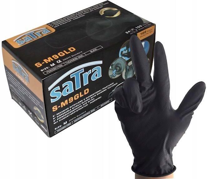 Rękawiczki Nitrylowe M Czarne Mocne 100szt. Satra Suchowola