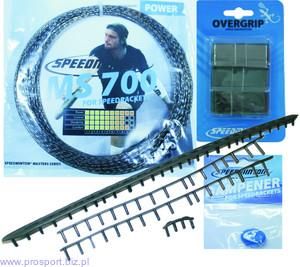Speedminton racket upgrade set do renowacji twojej rakiety W skład zestawu wchodzi: - komplet 3 owijek overgrip (kolor biały lub czarny) - komplet grometów (uniwersalny, do wszystkich rakiet za wyjątkiem Blade i Phantom) w kolorze białym lub czarnym - firmowy naciąg (MS600C lub MS700P) - tłumik drgań. Podczas składania zamówienia prosimy o zadeklarowanie w uwagach koloru owijek i grometów oraz rodzaju naciągu.