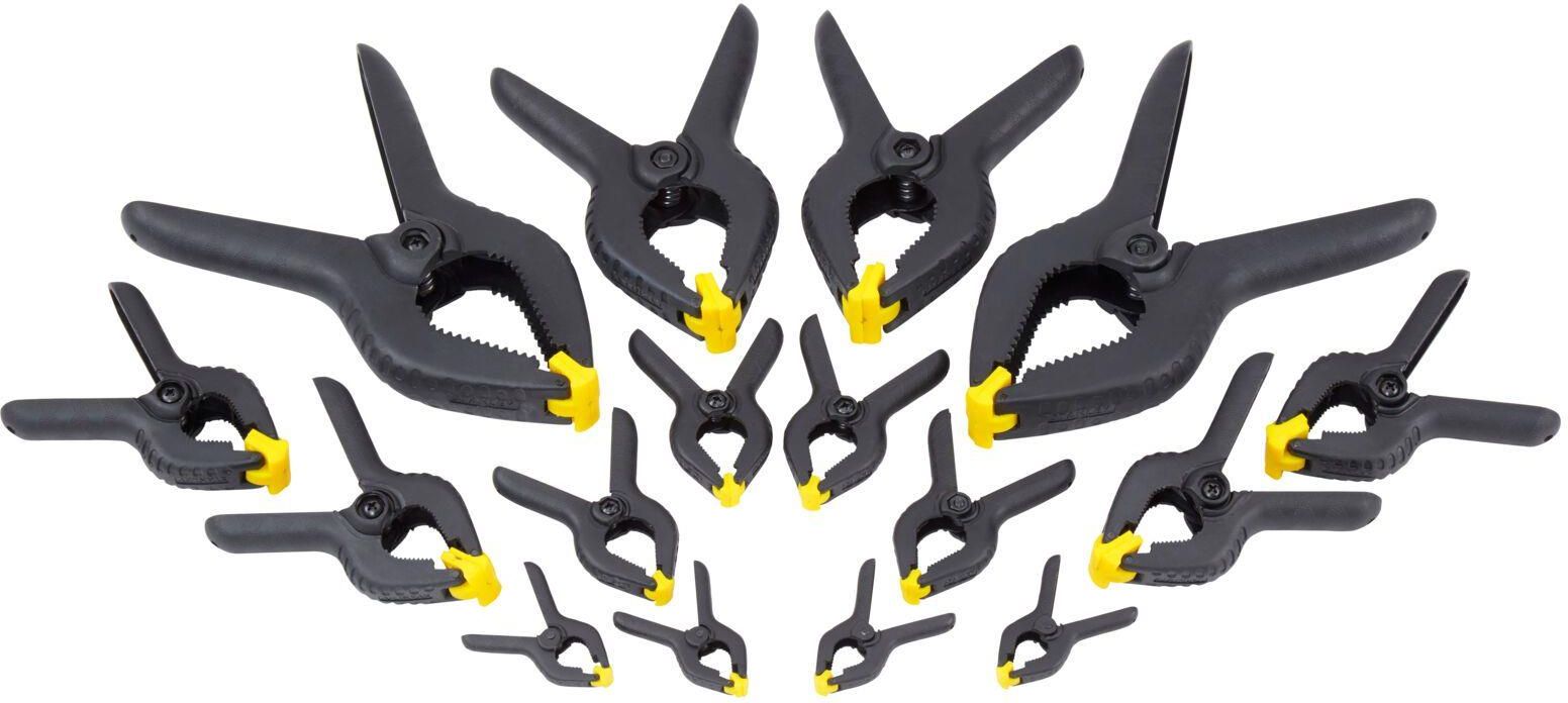 ZESTAW ZACISKÓW 16SZT STHT0-83094 Właściwości Komplet 16 zacisków sprężynowych do lekkiego przytrzymywania i zaciskania Walcowane na zimno stalowe sprężyny zapewniają trwałość Wzmocniony, nylonowy korpus Uchylne szczęki zaciskowe ułatwiają unieruchomienie niestandardowych kształtów Różne rozmiary …