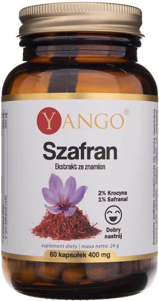 Szafran - ekstrakt ze znamion suplement diety - 60 kapsułek Ekstrakt ze znamion szafranu standaryzowany nakrocynę i safranal. SZAFRAN (CROCUS SATIVUS) TO JEDNA Z NAJDROŻSZYCH I NAJSTARSZYCH PRZYPRAW NA ŚWIECIE, OD WIEKÓW CENIONA ZE WZGLĘDU NA SWÓJ NIEZWYKŁY KOLOR I BOGATY, WYRAZISTY SMAK. NAJDROŻSZA PRZYPRAWA ŚWIATA Szafran wytwarzany jest z krokusa szafranowego - fioletowego kwiatu, który kwitnie jesienią i może rosnąć niemal na całym świecie. Pomimo jednak, że rośliny te podlegają adaptacji geograficznej, ich wykorzystanie dla pozyskania szafranu wymaga wiele ostrożności i przygotowań. Kwiaty zawierające cenną przyprawę, kwitną tylko przez 1-3 tygodni w roku i muszą być zbierane ręcznie. Szacuje się, że na 1 gram szafranu składa się aż 150 kwiatów. SEKRET ZDROWIA W PIĘKNYM KWIECIE Od wieków szafran używany był ze względu na swoje niesamowite właściwości. Według współczesnych badań pręciki crocus sativus zawierają związki roślinne, które działają jako przeciwutleniacze, wspomagając ochronę komórek przed stresem oksydacyjnym. Oprócz tego, jego składniki aktywne szeroko wykorzystywane są w preparatach poprawiających równowagę emocjonalną i nastrój. Do dziś szafran zaskarbił sobie przychylność kobiet na całym świecie, łagodząc nieprzyjemne objawy miesiączki, takie jak drażliwość, bóle głowy i poczucie niepokoju. Dowiedziono też, że szafran może stymulować libido u kobiet i mężczyzn, a nawet poprawiać samą płodnośćprzez wzmocnienie erekcji i zwiększenie ilości produkowanego nasienia. Regularna suplementacja szafranem: Przyczynia się do utrzymania równowagi emocjonalnej Znacząco poprawia nastrój Stymuluje libido u kobiet i mężczyzn Pomaga utrzymać komfort przed i podczas cyklu miesiączkowego Poprawia erekcję i zwiększa objętość męskiego nasienia 30 000 µg ekstraktu z szafranu w dawce dziennej Jedno opakowanie wystarczy na 2 miesiące suplementacji Kapsułki wykonane z celulozy roślinnej STAWIAMY NA JAKOŚĆ! Suplementy YANGO produkujemy zachowując najwyższe rygory kontroli jakości. Dbamy o odpowiednie stężenie substancji czynnych i całkowite bezpieczeństwo produktów. Wierzymy, że w ten sposób możemy skutecznie pomóc Ci w osiągnięciu zamierzonych celów. Składnik aktywny / 1 kapsułka Znamiona szafranu - ekstrakt: / 30 000 µg - w tym krocyna (2%): / 600 µg - w tym safranal (1%): / 300 µg Sposób użycia: 1 kapsułka raz dziennie. Kapsułkę połknąć i popić dużą ilością wody po posiłku. Składniki: Substancja wypełniająca: celuloza mikrokrystaliczna, ekstrakt ze znamion szafranu (Crocus sativus) standaryzowany na zawartość min. 2% krocyny oraz 1% safranalu. Skład kapsułki: celuloza roślinna (wegetariańskie) Informacja: Nie przekraczać zalecanej dziennej porcji. Suplement diety nie może być stosowany jako substytut zróżnicowanej diety i zdrowego trybu życia. Przechowywać w suchym i ciemnym miejscu w temperaturze pokojowej, w sposób niedostępny dla małych dzieci. Wyprodukowano w Unii Europejskiej. Podmiot odpowiedzialny: YANGO Sp. z o.o. Masa netto: 24 g. Ostrzeżenie: Osoby przyjmujące leki powinny przed użyciem skonsultować się z lekarzem lub farmaceutą. Niewskazane dzieciom, kobietom w ciąży oraz karmiącym. Informacja alergiczna: Nie zawiera skorupiaków, jaj, ryb, orzechów, składników mlecznych, selera, soi, gorczycy, sezamu. Produkowane bez użycia sztucznych substancji konserwujących, zapachowych lub barwiących. Produkt wolny od metali ciężkich, takich jak arsen, kadm, ołów czy rtęć. Informacje o producencie: Firmę YANGO założono w 2014 roku. Ich powołaniem stało się stworzenie naturalnych suplementów diety o wyjątkowo skutecznym działaniu. Dobierając surowce do produkcji naszych suplementów diety firma YANGO kieruje się trzema zasadami: 1. Importują surowce wyłącznie od sprawdzonych i renomowanych dostawców. 2. Wykorzystują surowce pozyskiwane w miejscach ich naturalnego występowania, na przykład kurkumina pochodzi z Indii, graviola z Peru, a grzyby witalne z Chin. 3. Dbają o ich maksymalną przyswajalność oraz wysoką dawkę substancji czynnych, dzięki czemu preparaty charakteryzują się wyjątkową skutecznością. YANGO to wyłącznie w 100% naturalne suplementy diety pochodzące od zweryfikowanych dostawców. Dodatkowym atutem tych suplementów jest cena – w większości przypadków towary firmy YANGO możesz kupić taniej, niż podobne produkty innych marek. Z czego to wynika? Oprócz prowadzonej dystrybucji na terenie Polski, są też bezpośrednim importerem. Posiadają partnerów handlowych na terenie Europy, Azji, Ameryki Północnej i Południowej. Dzięki temu „ciąg logistyczny” jest krótszy, omijają marże wielu pośredników, a Ty dostajesz produkty najwyższej jakości w bardzo konkurencyjnych cenach. ODKRYCIE ROKU 2020 Marka YANGO® została wyróżniona w ogólnopolskim plebiscycie powszechnej popularności produktów i usług dostępnych wśród konsumentów otrzymując wyróżnienie jako ODKRYCIE ROKU 2020 LAUR KONSUMENTA w kategorii Nutraceutyki i nutrikosmetyki