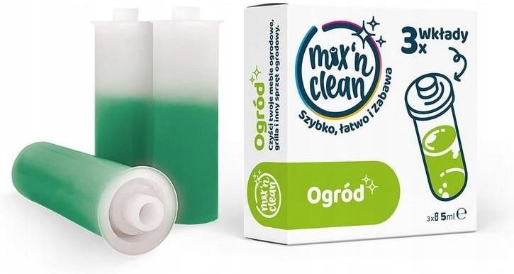 Uwaga: Aukcja dotyczy kapsułek/ nabojów do Mix'n Celan ogród. Butelkę wraz z jednym nabojem można zakupić na innej aukcji. Holenderska firma Tevan jest marką z 40 letnią tradycją w produkcji profesjonalnych środków czyszczących do każdego wnętrza. Gwarantujemy najwyższą jakość i pełną satysfakcję z użytkowania naszych produktów. Czym jest Mix’n Clean? Wejrzymy że higiena jest niezwykle ważna aby wieść zdrowe życie. Pośpiech każdego dnia nakłada na nas wyjątkowo wysokie tempo, przez co nie mamy czasu nawet na sprzątanie. Chcemy uczynić czyszczenie łatwiejszym, szybszym i przyjemniejszym, aby utrzymać dom w większym porządku z mniejszą ilością produktów. Mamy więcej czasu dla siebie, naszej rodziny czy hobby. Płyn do czyszczenia ogród Mix'n Clean jest środkiem czyszczącym, który czyści meble ogrodowe, narzędzia i sprzęt ogrodowy oraz grilla. Mix'n Clean oparty jest na starannie dobranych składnikach biodegradowalnych które dokładnie czyszczą powierzchnię nie pozostawiając smug i zapewniają świeży zapach. Produkty z serii Mix'n Clean stawiają na ekologię i ograniczenie śladu węglowego, redukcję odpadów plastikowych oraz zmniejszenie ilości aut transportowych na drogach. Jak to działa? Przygotowanie do pracy Mix’nClean jest bardzo łatwe! Wystarczy wymieszać zawartość kapsułki z wodą i całość jest gotowa do pracy. 1.Wypełnił butelkę zimną wodą do kreski.2.Włóż kapsułkę z zapasem do szyjki butelki.3.Popchnij końcówkę spryskiwacza w dół butelki, przekręć zgodnie z ruchem wskazówek zegara dopóki całość nie kliknie i zamknie się.4.Wymieszaj dobrze całość, jest gotowa do pracy.5.Spryskaj i wycieraj. Codzienne sprzątanie: Najlepsze efekty uzyskamy używając ściereczki z mikro-fibry Nanieść na ścierkę Wytrzeć powierzchnię Pozostawić do wyschnięcia Atuty: Świeży zapach Czyści meble, grill, sprzęt oraz narzędzia ogrodowe Całkowicie biodegradowalny Pomaga zaoszczędzić czas i pieniądze Zawiera : Trzy kapsułki/ wkłady do butelki Mix'n Clean TEVAN TO CHEMIA PROFESJONALNA. TO ROZWIĄZANIA O DUŻO BARDZIEJ SKUTECZNYM DZIAŁANIU NIŻ ZWYKŁE ŚRODKI CODZIENNEGO UŻYTKU. Zalecamy stosować rękawice ochronne.
