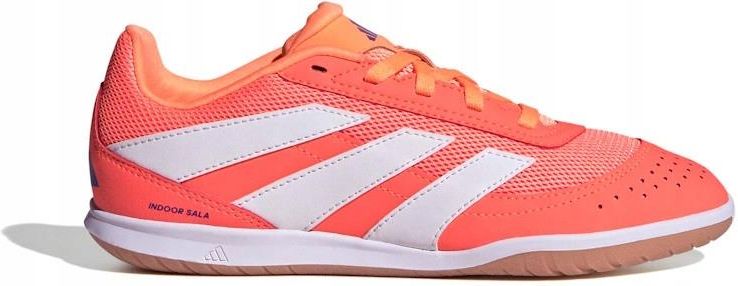 Buty piłkarskie dziecięce halówki adidas Predator Club IN Sala JR JH8860 Model: JH8860 Kolor: pomarańczowy Materiał Przeznaczenie: halówki - IC/IN Buty piłkarskie dziecięce halówki adidas Predator Club IN Sala JR JH8860 Wygodne buty, które pomogą Ci trafić do bramki na nawierzchniach halowych. Odkryj różnicę między pragnieniem a pewnością trafienia do bramki w butach adidas Predator, które stworzono z myślą o strzelaniu goli. Te młodzieżowe buty piłkarskie, stworzone do szybkiego futsalu, mają wentylowaną cholewkę z siateczki, która jest wyłożona miękkim materiałem i pokryta wytrzymałym TPU. Gumowa podeszwa zewnętrzna zapewnia przyczepność na płaskich powierzchni halowych bez pozostawiania śladów.