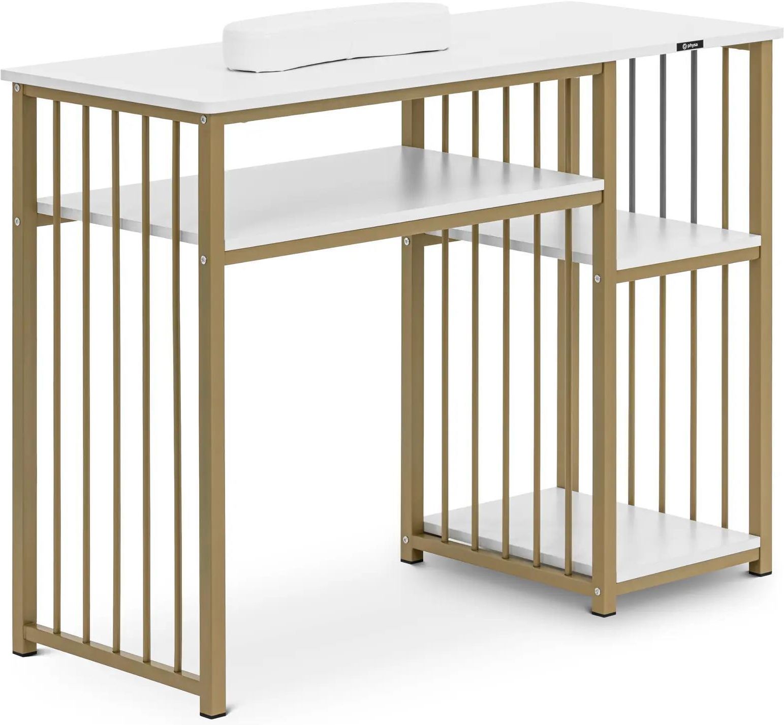 Biurko do manicure - żelazna rama - białe / złote - 3 półki - podpórka pod dłonie - physa - PHY_MC09 Sulechów