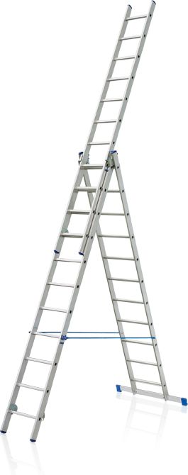 Trzyelementowa aluminiowa drabina rozkładana. Drabina dwuczęściowa aluminiowa System samoblokujący Pasy zabezpieczające Antypoślizgowe nóżki Grubszy profil Obciążenie do 150 kg Wymiary profili uzależnione są od ilości szczebli. Wyróżnia się następujące wymiary profili. W drabinach 1 x 6 – 1 x 9 profile mają wymiary 50 mm x 20 mm x 1,25 mm W drabinach 1 x 10 – 1 x 18 profile mają wymiary 61,5 mm x 20 mm x 1,25 mm W drabinach 1 x 20 profile mają wymiary 71,5 mm x 20 mm x 1,25 mmTakie rozmiary profili czynią drabinę jedną z najmocniejszych na polskim rynku. Dwuczęściowa aluminiowa drabina uniwersalna, którą można stosować jako drabinę schodkową, drabinę przystawną i wysuwaną Stalowe zawiasy umożliwiające proste i szablowe wysuwanie drabinySystem samoblokujący zapobiega otwieraniu się drabiny podczas transportu Antypoślizgowe nóżki zapewniające stabilność drabiny Używać drabinę można wewnątrz lub na zewnątrz Maksymalne obciążenie 150kg