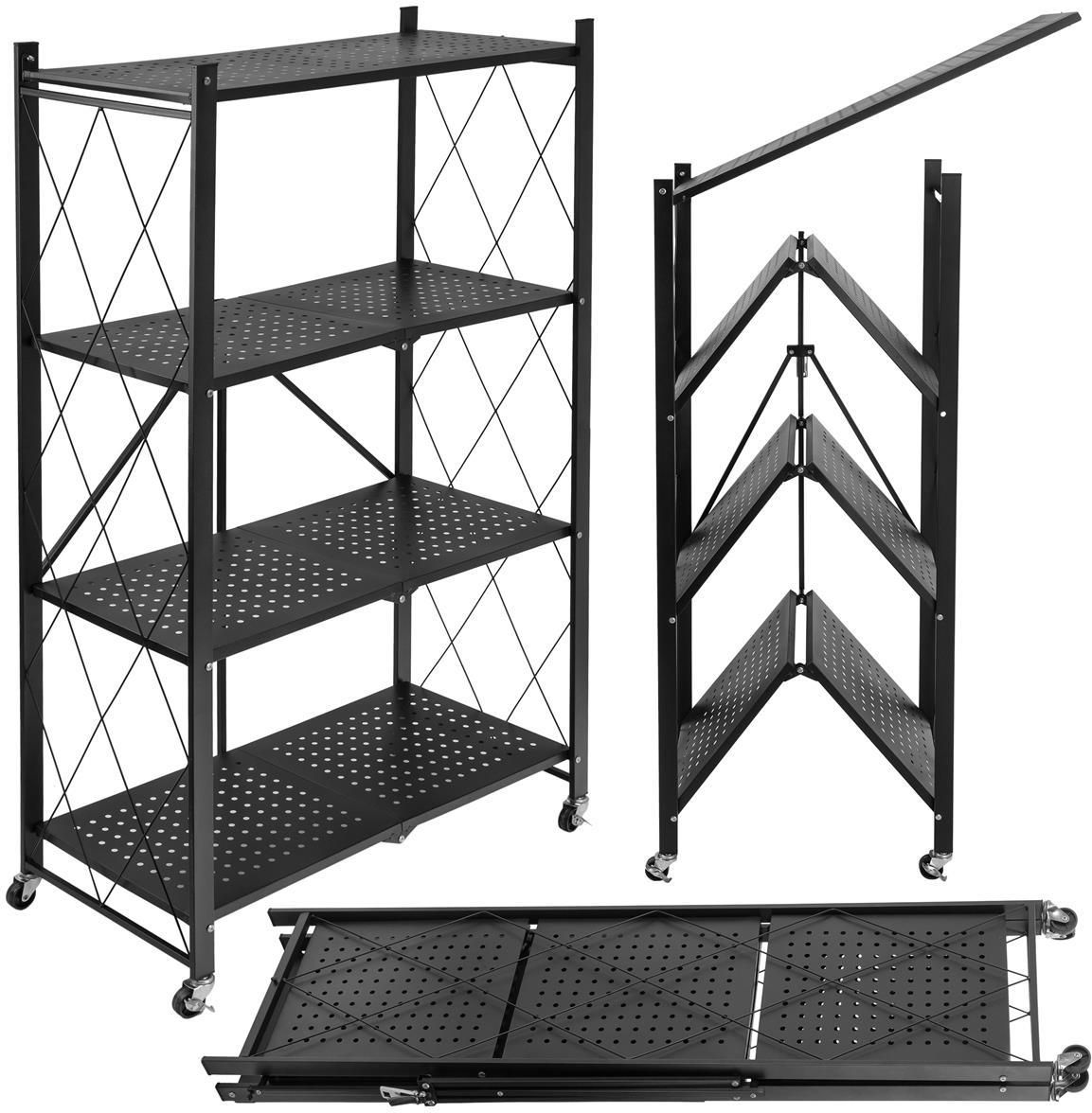 Regał składany GESTEL 4 poziomy czarny na kółkach Przeznaczenie: dom, biuro, lokale użytkowe | Kolor: czarny | Materiał: Metal ⭐️Składana konstrukcja ⭐️4 przestronne półki ⭐️Obrotowe kółka z blokadami ⭐️Nie wymaga montażu Efektywne przechowywanie w nowoczesnym wydaniu! Regał Gestel to praktyczne …