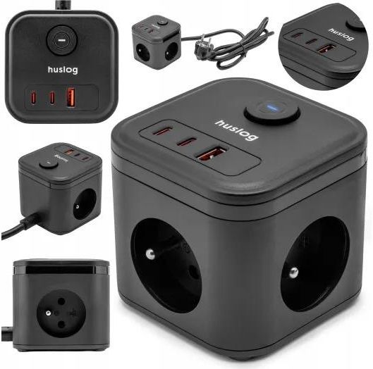PRZEDŁUŻACZ KOSTKA ZASILAJĄCA 3 USB 3 GNIAZDA QC 20W SMART LISTWA Huslog PRZEDŁUŻACZ KOSTKA HUSLOG PD 20W – KOMPAKTOWY I FUNKCJONALNY! Zadbaj o porządek i wygodę podczas ładowania urządzeń dzięki przedłużaczowi Huslog PD 20W. Kompaktowy design w kształcie kostki pozwala na ergonomiczne podłączenie do 6 urządzeń jednocześnie! Dzięki funkcji szybkiego ładowania USB-PD do 20W, możesz błyskawicznie naładować swoje smartfony, tablety czy inne urządzenia. Praktyczne, antypoślizgowe punkty na spodzie chronią meble przed zarysowaniami i zapewniają stabilność, a solidne wykonanie gwarantuje niezawodność w codziennym użytkowaniu. Szybkie ładowanie USB-PD 20W Kostka obsługuje szybkie ładowanie USB-PD o mocy 20W, co pozwala na błyskawiczne uzupełnianie energii urządzeń. Ładowanie kompatybilnych sprzętów trwa nawet do 50% krócej w porównaniu do standardowych ładowarek. 3 złącza USB (USB-A + USB-C) Przedłużacz oferuje trzy porty USB: jeden USB-A i dwa USB-C. Dzięki temu możesz jednocześnie ładować urządzenia mobilne, tablety i inne akcesoria, bez konieczności dodatkowych adapterów. Intuicyjny przycisk zasilania Wbudowany, podświetlany przycisk zasilania umożliwia szybkie i wygodne włączanie oraz wyłączanie przedłużacza. Dzięki temu możesz oszczędzać energię, odłączając wszystkie urządzenia jednocześnie, gdy nie są używane. Przycisk jest łatwy w obsłudze, co czyni korzystanie z urządzenia jeszcze bardziej komfortowym. Trzy gniazda elektryczne typu E Posiada trzy uniwersalne gniazda elektryczne typu E, umożliwiające jednoczesne podłączenie urządzeń takich jak laptopy, lampy czy inne sprzęty domowe. Dzięki solidnemu wykonaniu gniazda gwarantują stabilne zasilanie, a ich rozmieszczenie pozwala na wygodne użytkowanie nawet przy większych wtyczkach. To idealne rozwiązanie dla osób, które potrzebują praktycznego i kompaktowego rozwiązania w codziennym użytkowaniu. Podgumowane punkty antypoślizgowe Został wyposażony w podgumowane punkty na spodzie, które skutecznie zapobiegają przesuwaniu się urządzenia na gładkich powierzchniach. Chronią one również meble przed zarysowaniami, zapewniając dodatkowe bezpieczeństwo i estetykę. Dzięki temu przedłużacz pozostaje stabilny nawet podczas intensywnego użytkowania. Ergonomiczne rozmieszczenie gniazd Przedłużacz posiada przemyślane rozmieszczenie gniazd elektrycznych, które zapewnia wygodę użytkowania nawet przy większych wtyczkach. Dzięki temu można jednocześnie podłączyć kilka urządzeń bez ryzyka blokowania sąsiednich gniazd. Kompaktowy kształt sprawia, że przedłużacz idealnie pasuje do każdego pomieszczenia, oferując maksymalną funkcjonalność. Długi i wygodny przewód zasilający Wyposażony w przewód o długości 1,4 metra, co zapewnia swobodę użytkowania w różnych miejscach. Dzięki takiej długości możesz łatwo podłączyć urządzenie nawet w trudno dostępnych gniazdkach. Solidna konstrukcja kabla gwarantuje trwałość i bezpieczeństwo podczas codziennego użytkowania. Specyfikacja Produktu Kolor: Czarny Ładowanie do 6 urządzeń jednocześnie Materiał wykonania: Tworzywo sztuczne Zasilanie: 230V~ 50/60Hz, max. 16 A Wyjście USB: USB-A: 5V ⎓ 3A / 9V ⎓ 2A / 12V ⎓ 1,5A; USB-C: 5V ⎓ 3A / 9V ⎓ 2,22A / 12V ⎓ 1,67A Złącza: 3 gniazda typu E, 1 x USB-A, 2 x USB-C Najczęściej zadawane pytania 1. Jaką długość ma przewód zasilający przedłużacza? Przewód ma długość 1,4 metra, co zapewnia wygodę użytkowania w różnych pomieszczeniach. 2. Ile urządzeń można podłączyć jednocześnie? Przedłużacz pozwala na jednoczesne podłączenie do 6 urządzeń – 3 przez gniazda elektryczne typu E oraz 3 przez porty USB (1 x USB-A i 2 x USB-C). 3. Czy urządzenie obsługuje szybkie ładowanie? Tak, przedłużacz obsługuje szybkie ładowanie USB-PD do mocy 20W, co pozwala na błyskawiczne ładowanie kompatybilnych urządzeń. 4. Czy przedłużacz ma zabezpieczenia przed przegrzaniem? Tak, urządzenie posiada wbudowane systemy ochronne, które zabezpieczają zarówno przedłużacz, jak i podłączone urządzenia przed przegrzaniem. 5. Czy gniazda są odpowiednie dla dużych wtyczek? Tak, ergonomiczne rozmieszczenie gniazd pozwala na podłączanie większych wtyczek bez ich wzajemnego blokowania. 6. Czy przedłużacz można używać na delikatnych powierzchniach? Tak, podgumowane punkty na spodzie chronią powierzchnię mebli przed zarysowaniami i zapobiegają przesuwaniu się urządzenia. 7. Czy przycisk zasilania jest podświetlany? Tak, intuicyjny przycisk zasilania jest podświetlany, co ułatwia jego używanie w ciemnych pomieszczeniach. 8. Jaki jest maksymalny prąd, jaki obsługuje przedłużacz? Maksymalny prąd obsługiwany przez przedłużacz to 16 A. 9. Czy przedłużacz nadaje się do użytku biurowego? Tak, przedłużacz doskonale sprawdzi się zarówno w biurze, jak i w domu, dzięki swojej wszechstronności i kompaktowej konstrukcji. Huslog - dlaczego akurat my? Funkcjonalne produkty niezbędne w każdym domu Minimalizm i dbałość o detale Stawiamy wymagania naszych klientów na pierwszym miejscu Wysoka jakość produktów Technologia, która daje Ci komfort każdego dnia Ekologiczne opakowania w trosce o środowisko