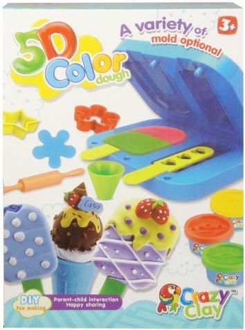 Zestaw masy plastycznej do tworzenia smakowitych dań. W zestawie znajdują się 4 kolory masy plastycznej, maszyna do wyciskania lodów lub kawałków pizzy i kanapek, miseczki lub nóż do pizzy, wałek, nożyczki i inne wyciskarki. Po zakończonej zabawie, masę należy chować do kubeczków, aby uniknąć jej wyschnięcia (a dalej kruszenia). Zabawka przeznaczona dla dzieci powyżej 3 lat. Produkt zapakowany w kartonowe opak