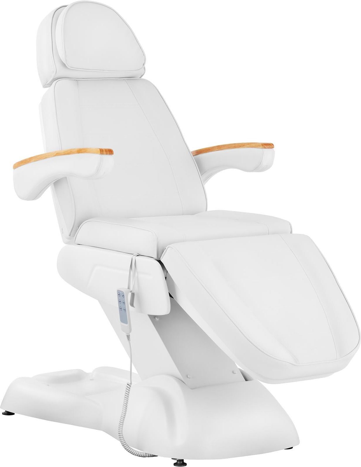 Fotel kosmetyczny - 200 W - 150 kg - biały marki Physa Model: PHYSA RHO WHITE Nr katalogowy: 10040479 Stan produktu: Nowy Najważniejsze cechy produktu Stabilność – udźwig 150 kg dzięki solidnej ramie wykonanej z metalu malowanego proszkowo Higiena – powierzchnia do leżenia pokryta łatwą w utrzymaniu Sztuczna skóra (PVC) , odporną na wodę i olejki Regulacja wysokości – powierzchnia do leżenia lub siedzenia może być regulowana w zakresie 615 - 935 mm wysokości Wygoda – przyjemna pianka o grubości 95 mm, podłokietniki i zagłówek Dopasowanie – oparcie, podłokietniki oraz podnóżek i zagłówki można ustawić indywidualnie Specyfikacja techniczna Materiał - Metal malowany proszkowo Kolor - Biały Moc [W] - 200 Maksymalna wysokość siedzenia [cm] - 93.5 Minimalna wysokość siedzenia [cm] - 61.5 Wymiary podstawy [cm] - 125 x 61 Tryb pracy - 2 min pracy / 18 min przerwy Materiał ramy - Wymiary podnóżka [mm] - 600 x 610 Mechanizm podnoszenia - Elektryczny (siedzisko, pochylenie, oparcie) / sprężyna gazowa (podnóżek) Wymiary siedziska [mm] - 490 x 610 Materiał tapicerki - Sztuczna skóra (PVC) Wymiary oparcia [mm] - 670 x 610 Klasa ochronności IEC - I Materiał wypełniający siedzenie - Pianka Grubość tapicerki [mm] - 95 Zakres regulacji kąta pochylenia oparcia [°] - 0 - 78 Zakres regulacji kąta pochylenia podnóżka [°] - 0 - 42 Wymiary zagłówka [mm] - 330 x 440 Zakres regulacji wysokości zagłówka [mm] - 150 Długość nóżek / średnica podstawy [mm] - 1250 x 610 Zakres regulacji wysokości siedziska [mm] - 615 - 935 Zakres regulacji długości krzesła [cm] - Maks. 207 Instrukcja obsługi - Tak Regulowane oparcie - Nie Regulowany kąt siedzenia - Tak Wysokość paczki [cm] - 80.5 Długość paczki [cm] - 168 Szerokość paczki [cm] - 67.5 Waga paczki [kg] - 93 Wysokość produktu [cm] - 179 Długość produktu [cm] - 203.5 Szerokość produktu [cm] - 81 Waga produktu [kg] - 69 Liczba paczek - 1 Idealna pozycja na łóżku kosmetycznym PHYSA RHO WHITE Dzięki długości maks. Maks. 207 cm fotel do pedicure marki PHYSA RHO WHITE zapewnia całkowity relaks podczas leżenia lub siedzenia. Pozwala to na wygodne przeprowadzanie zabiegów kosmetycznych, którymi Twoi klienci i klientki będą się w pełni cieszyć. Oczywiście fotel kosmetyczny nadaje się również do użytku w studiach stylizacji, tatuażu i piercingu, w obiektach SPA & Wellness oraz jako stół do masażu. Wygodne łóżko kosmetyczne dla zdrowia i urody Pod względem komfortu i ergonomii fotel do salonu kosmetycznego wyposażono w liczne funkcje. Trzy silniki umożliwiają łatwą obsługę za pomocą przewodowego (3 m) sterowania ręcznego. Wybierzesz różne ustawienia wysokości w zakresie 615 - 935 mm. Dodatkowo kąt oparcia (0 - 78°), podłokietników (0 - 180°) oraz podnóżka (0 - 42°) można dostosować do danego zabiegu i klienta. Miękka tapicerka w połączeniu z najwyższej klasy wodoodpornym i olejoodpornym pokryciem ze skóry syntetycznej, którą można łatwo wyczyścić, zapewnia wysoki komfort i nienaganną higienę. Twoi klienci poczują się absolutnie zrelaksowani na tapicerce o grubości 95 mm, w którą wyposażono fotel kosmetyczny. Wgłębienie na twarz w obszarze głowy pozwoli klientowi swobodnie oddychać nawet w pozycji leżącej, a leżankę kosmetyczną przekształcisz w łóżko do masażu. Tę przyjemną atmosferę dopełnia funkcja leżenia. Dzięki przemyślanej konstrukcji, podstawie 1250 x 610 mm wykonanej z metalu malowanego proszkowo i wysokiej jakości materiałów łóżko kosmetyczne Physa ma maksymalny udźwig 150 kg. Sprzęt zachwyca niezwykłą trwałością oraz prostym i klasycznym designem. Zawartość przesyłki Fotel kosmetyczny PHYSA RHO WHITE Pilot ręczny Bedienungsanleitung Zdjęcia produktu