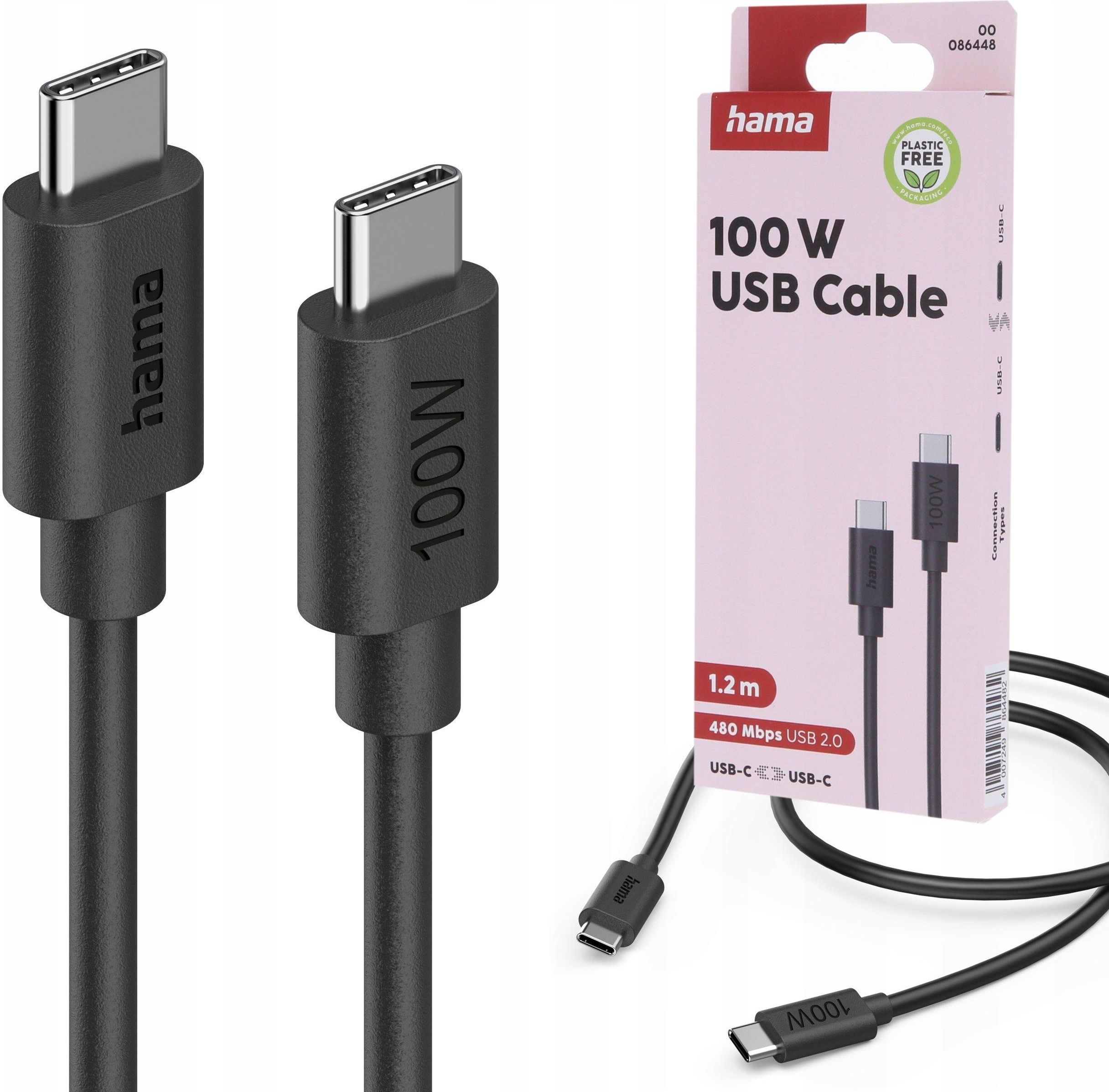Hama Kabel Usb C Usb C 100W 1,2M Czarny Szybkie Ładowanie 480 Mbit/s Sulęcin