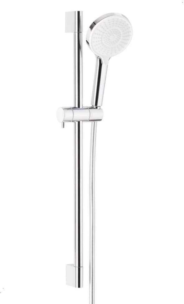 KFA Armatura Krakowska OTAVA CHROM natrysk przesuwny 69 cm 841-345-00 Gdy myślimy o designie, najczęściej kojarzy nam się on z wyglądem danego przedmiotu. Jednak projektowanie produktów to znacznie więcej niż forma – to także odpowiadanie na potrzeby użytkowników. Jednym z kluczowych oczekiwań wobec produktów codziennego użytku jest obecnie ekologiczność. Łazienkowe baterie oszczędnościowe są doskonałą odpowiedzią na tę potrzebę. Pozwalają zredukować zużycie wody nawet o połowę w stosunku do baterii tradycyjnych, nie zmniejszając przy tym komfortu użytkowania. Dzięki ich zastosowaniu nie tylko oszczędzamy wodę, ale także redukujemy emisję CO2, bo mniej wody to też mniej energii niezbędnej do jej dostarczenia oraz podgrzania. Baterie można określić jako biżuterię łazienki. Są dodatkiem, który nadaje wnętrzu charakteru, podkreśla wybrany styl, a jednocześnie odgrywa niezastąpioną rolę w codziennym korzystaniu z tej strefy. Na szczególną uwagę w kolekcji Otava zasługują nowoczesne baterie podtynkowe ze zdejmowaną osłoną regulatora oraz ciekawie zaprojektowana 3-funkcyjna rączka natrysku. INDEKS: 841-345-00 Kolor: chrom PKWiU: 28.14.20.0 Materiał: mosiądz + tworzywo ABS Przepływ wody [l/min]: 10 Ilość strumieni rączki natrysku: 3 Długość węża [mm]: 1500 Materiał węża: PVC System czyszczenia: easy clean Opakowanie Zawiera drążek natrysku uchwyty ścienne ‒ 2 szt. (w tym 1 uchwyt z możliwością dostosowania położenia do starych otworów) zestaw montażowy (2 wkręty z kołkami ściennymi) rączka natrysku z uchwytem wąż PVC (L=1500 mm)
