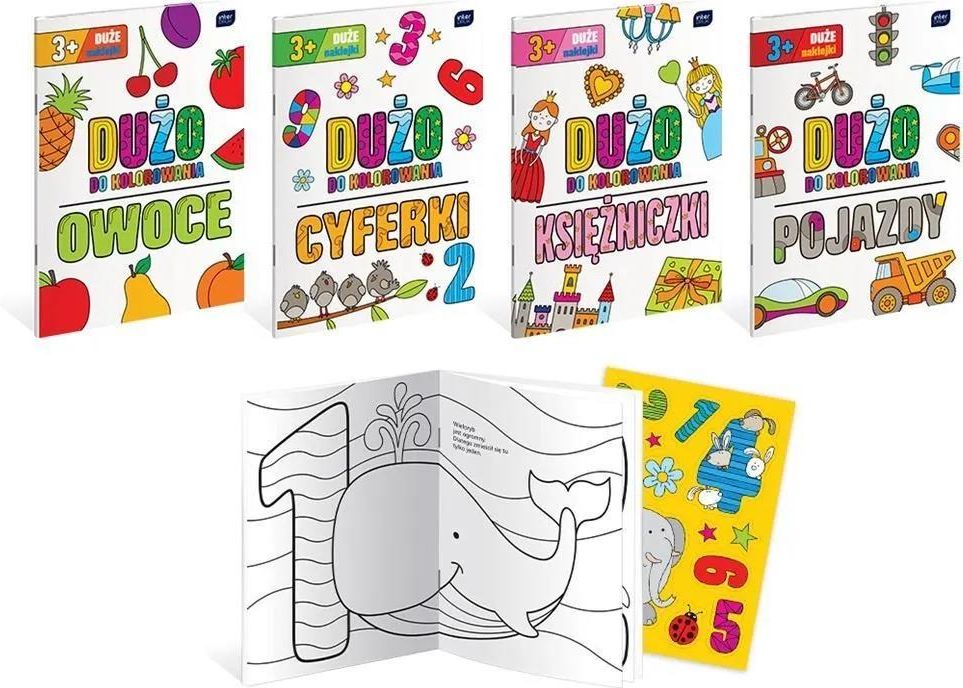 Mix wzorów, towar wysyłany losowo. Kolorowanka w formacie A4 z naklejkami. Kolorowanka A4 z naklejkami – Dużo do kolorowania 2 Odkryj radość tworzenia z kolorowanką A4 z naklejkami „Dużo do kolorowania 2”! Ta wyjątkowa publikacja to idealna propozycja dla małych artystów, którzy pragną rozwijać …