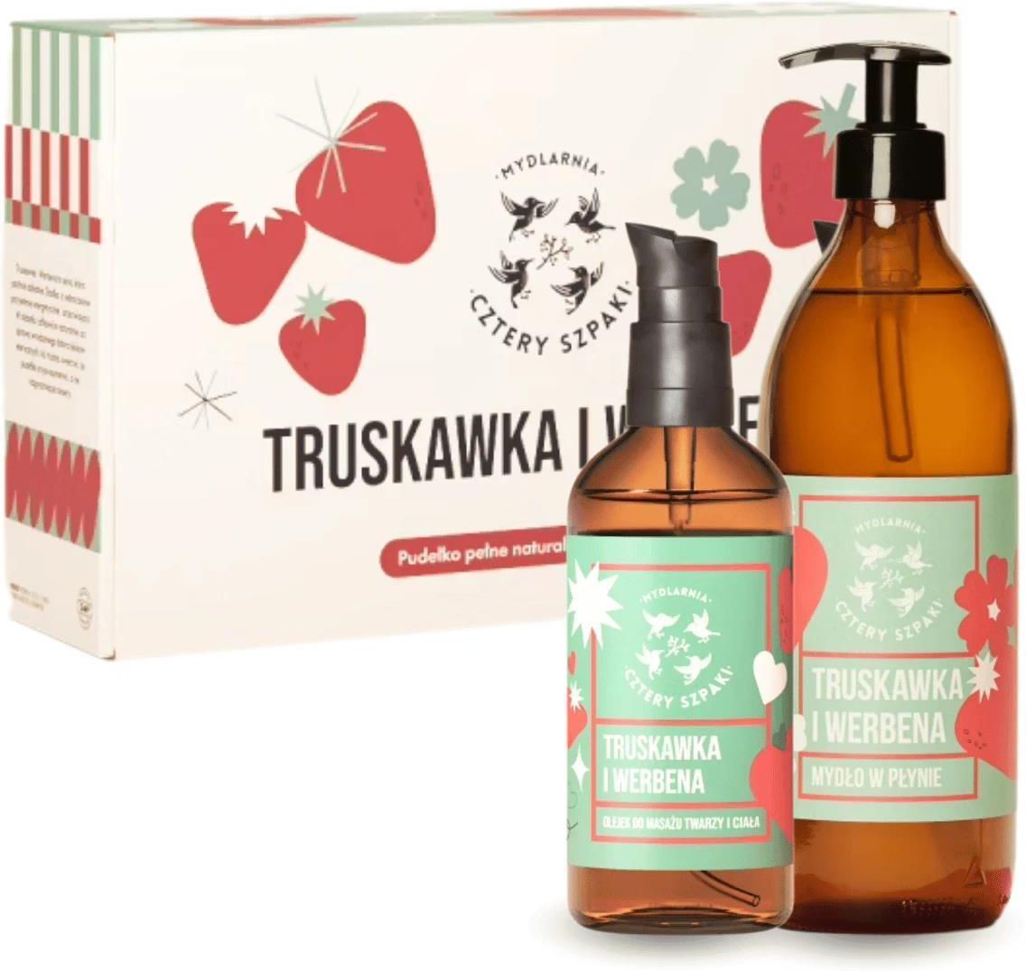 Mydlarnia Cztery Szpaki Truskawka i Werbena zestaw olejek do masażu 100ml + mydło w płynie 500ml Sulęcin