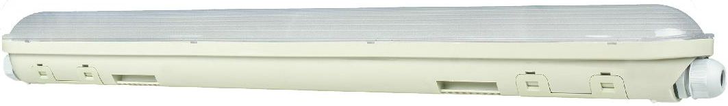 Oprawa hermetyczna LED DAMP PROOF E Very Wide. Dane techniczne: rodzaj źródła światła: zintegrowane diody LED moc znamionowa: 80 W napięcie zasilania: 230 V AC 50/60 Hz strumień świetlny: 10800 lm efektywność świetlna: 135 lm/W temperatura barwowa: 6500 K barwa światła: zimna biała 865 współczynnik oddawania barw: 80 kąt rozsyłu światła: 120 ° montaż: natynkowy, zawieszany wysokość: 1494 mm szerokość: 70 mm głębokość: 60 mm stopień ochrony: IP65, IK08 zakres temperatur pracy: od -20 °C do 40 °C materiał: poliwęglan (PC) kolor obudowy: szary