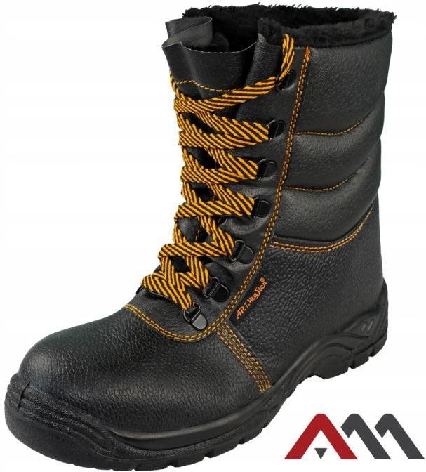 Trzewiki zimowe wysokie BWPUOC ART - MAS 45 Trzewiki ochronne marki ART-MAS to wysokiej jakości ocieplane obuwie ochronne przeznaczone do użytku przede wszystkim w okresie zimowym. Produkt o podwyższonej cholewce został wykonany z tłoczonych skór naturalnych co znacząco wpływa na wygodę użytkowania. Trzewiki wyposażono w stalowy nosek ochronny, który zabezpiecza stopę przed uderzeniami oraz przed przebiciem – jest on zgodny z normą SB (podnosek chroniący palce przed uderzeniem z energią 200J, odporność na oleje, benzynę i inne rozpuszczalniki organiczne.). Podeszwa obuwia została stworzona z poliuretanu – materiał ten charakteryzuje się odpornością na ścieranie i zużycia. Jest elastyczny, sprężysty, a także nierozciągliwy. Produkt posiada oznaczenie SRC oznaczające, że jest on odporny na poślizg, na podłożach ceramicznych, pokrytych roztworem laurylosiarczanu sodu. Certyfikat CE Kat. II; EN ISO 20345:2011