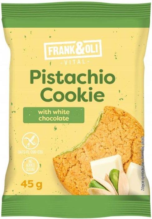 Ciasteczko miękkie pistacjowe z białą czekoladą bez cukru 45g Frank&Oli Sulejów