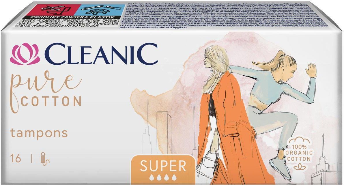 Cleanic Pure Cotton Super Tampony Delikatne i miękkie tampony testowane na skórze wrażliwej. Powierzchnia i wnętrze tamponu wykonane ze 100% bawełny organicznej. Czysta bawełna pozwala skórze oddychać, posiada neutralne pH. Testowane ginekologicznie i dermatologicznie. Skład 100% organiczna bawełna