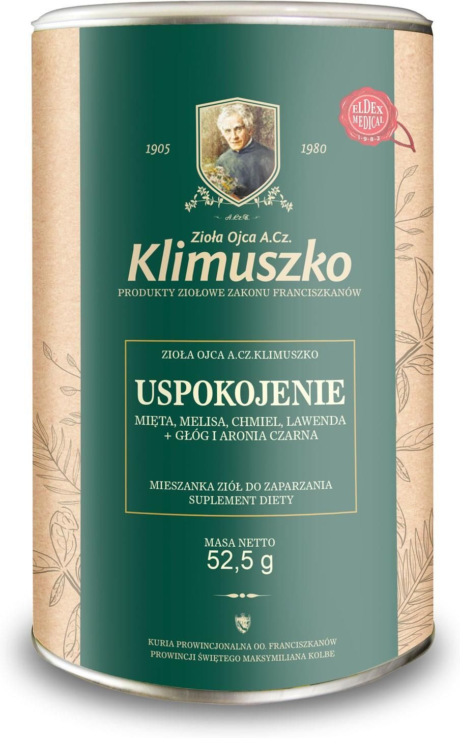 Ojciec Klimuszko Herbata Uspokojenie 30 Saszetek O. Mięta Melisa Chmiel Lawenda Głóg Aronia Sulejów