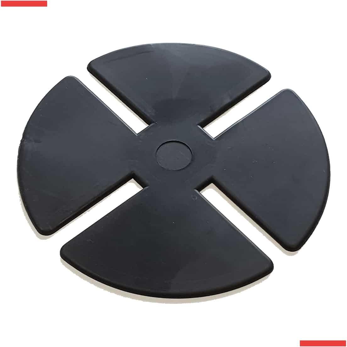 Średnica: 100 mm Grubość: ~1.5 mm Zastosowanie: Pod płyty tarasowe – W przypadku wsporników regulowanych serii STANDARD podkładki gumowe układamy pomiędzy twardą głowicą wspornika a płytą tarasową aby zminimalizować ścieranie się płyty z wspornikiem – W przypadku stosowania Wspornika gumowego 8 mm dzięki dodatkowej podkładce możemy zwiększyć wysokość samego wspornika aby zniwelować nierówności podłoża.