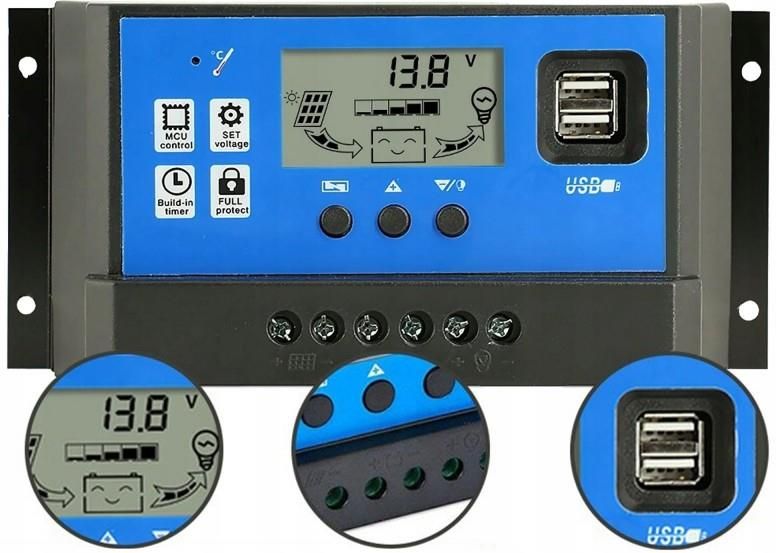 Regulator Ładowania 40A 12V 24V Kontroler Solarny Solarny regulator i kontroler ładowania PWM do paneli fotowoltaicznych 12/24V z wyświetlaczem LCD i dwoma portami USB. Regulator solarny i kontroler ładowania do paneli fotowoltaicznych 12/24V z wyświetlaczem LCD i portami USB. Przetwarza energię …