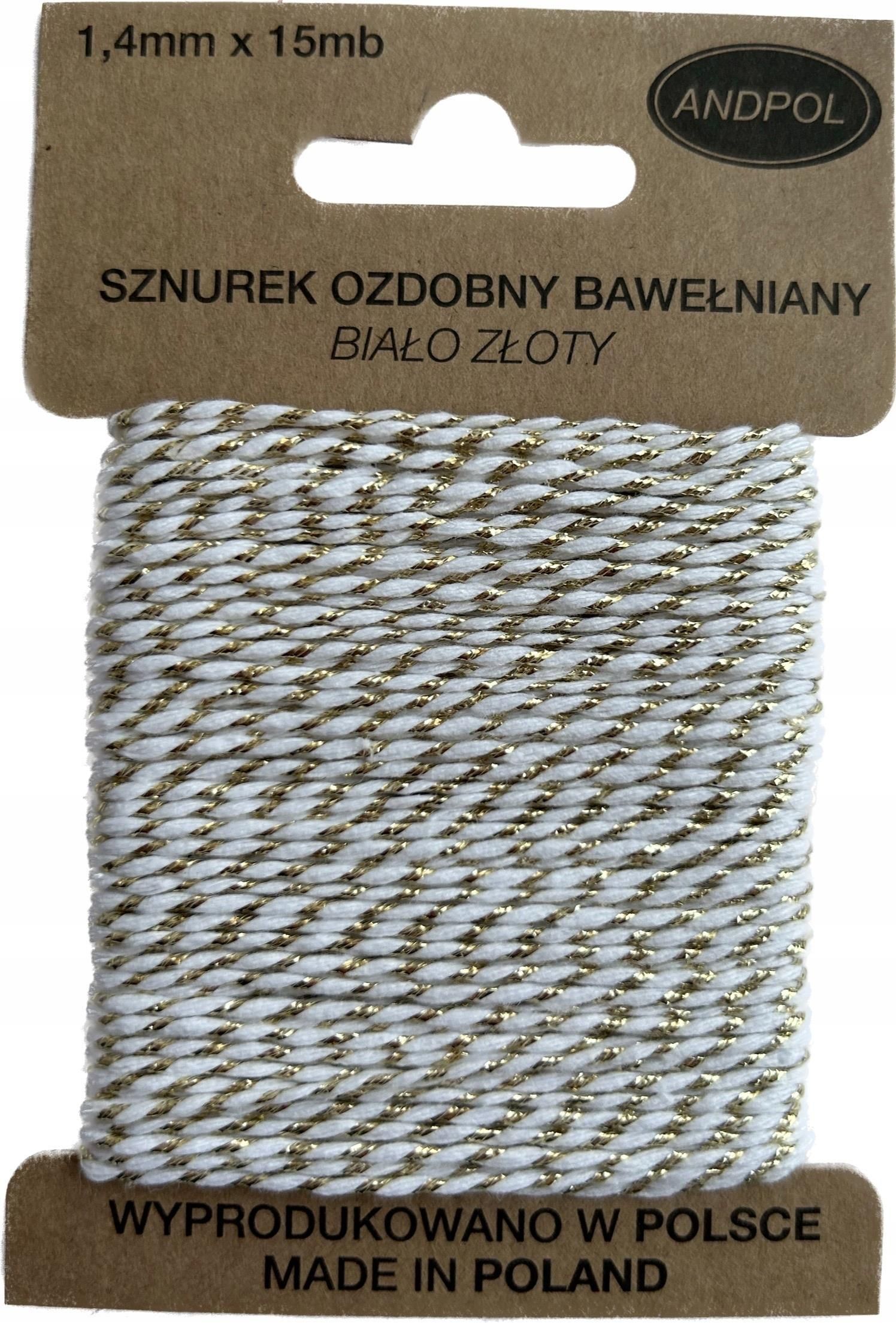Sznurek Ozdobny Bawełniany Biało Złoty 15Mb Sulejów