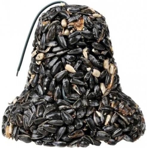 Dzwonek słonecznikowy do zimowego dokarmiania ptaków Opis: Waga dzwonka - 200 g Pożywny zlepek nasion słonecznika w ciekawej formie dzwonka Pokarm ma zamontowany haczyk, który ułatwia zamieszczenie go w odpowiednim miejscu Doskonałe źródło pożywienia dla drobnych ptaków w okresie zimowym Skład: słonecznik, spoiwo organiczne Składniki analityczne: białko surowe 15,24%; tłuszcz surowy 41,42%; popiół surowy 3,60%; włókno surowe 14,42%
