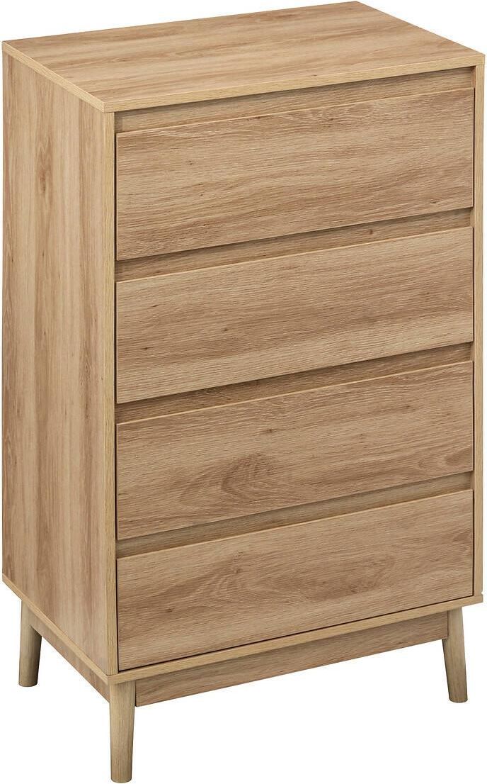 Wyjątkowo pojemna i elegancka komoda! Komoda Abana z 4 szufladami to niezwykle funkcjonalny mebel, który pozwoli Ci uporządkować swoje rzeczy w elegancki i stylowy sposób. Dzięki zastosowaniu metalowych szyn szuflady otwierają się delikatnie i płynnie, zapewniając Ci wygodę i komfort podczas korzystania z komody. Jednym z głównych atutów tej komody jest jej lekkość i subtelność, dzięki czterem nóżkom, które dodają jej lekkości i sprawiają, że idealnie pasuje do stylu boho lub japandi. Bez względu na to, czy urządzasz nowe mieszkanie, czy też chcesz odświeżyć swoje wnętrze, komoda Abana jest doskonałym wyborem. Komoda wykonana jest z wysokiej jakości płyty MDF, co gwarantuje jej trwałość i solidność. Dodatkowo, ozdobiona jest okleiną imitującą słoje drewna, dzięki czemu komoda prezentuje się bardzo naturalnie i elegancko. To idealne rozwiązanie dla osób, które cenią sobie estetykę i wysoką jakość wykonania. Dzięki czterem szufladom, komoda Abana zapewnia dużo miejsca do przechowywania różnych przedmiotów. Możesz w nich przechowywać ubrania, akcesoria, drobiazgi czy dokumenty - wszystko, co chcesz mieć w zasięgu ręki, ale jednocześnie schowane i uporządkowane. Komoda Abana to nie tylko praktyczne rozwiązanie, ale również doskonały element dekoracyjny. Jej minimalistyczny design i naturalne wykończenie sprawią, że będzie piękną ozdobą Twojego wnętrza. Dodatkowo, łatwo dopasujesz ją do innych mebli i dodatków, tworząc spójną i harmonijną przestrzeń. Wnętrze Twojego domu zasługuje na to, aby było funkcjonalne, estetyczne i wyjątkowe. Dlatego właśnie komoda Abana z 4 szufladami jest idealnym wyborem. Nie tylko pomoże Ci uporządkować swoje rzeczy, ale również doda charakteru i stylu Twojemu wnętrzu. Nie czekaj dłużej i postaw na jakość i design - wybierz komodę Abana już dziś! Co musisz wiedzieć przed zakupem? Metalowe szyny szuflad sprawiają, że szuflady otwierają się łagodnie i bezproblemowo Komoda ma 4 nóżki, co nadaje jej lekkości i sprawia, że idealnie pasuje do stylu boho lub japandi Wykonana z płyty MDF, komoda jest trwała i solidna