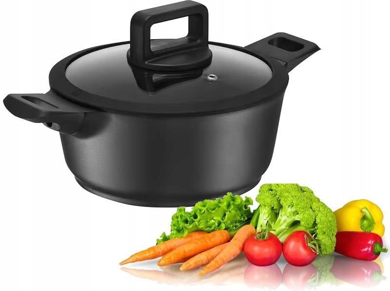Garnek aluminiowy z pokrywką Enzo 18 cm AMBITION 32860 Dostosowane do kuchenek: gazowych, ceramicznych, elektrycznych indukcyjnych Garnek aluminiowy do zmywarki Elegancki i funkcjonalny garnek z powłoką nieprzywierającą z kolekcji Enzo będzie doskonałym wyborem dla wymagających kucharzy, którzy cenią sobie innowacyjne rozwiązania i stylowy design. Wykonany z solidnego, odlewanego aluminium, gwarantuje szybkie i równomierne nagrzewanie, co przekłada się na oszczędność czasu i energii. Jego wnętrze pokrywa szwajcarska powłoka ILAG Ultimate, która zapewnia doskonałe właściwości nieprzywierające oraz najwyższą odporność na zarysowania, dzięki czemu gotowanie jest zdrowsze i bardziej komfortowe. Szklana pokrywa z odpowietrznikiem pary umożliwia pełną kontrolę nad procesem gotowania, zatrzymując jednocześnie ciepło i aromaty potraw. Zaawansowana powłoka ILAG Ultimate: najwyższej jakości, szwajcarska technologia o wyjątkowych właściwościach nieprzywierających. Odlewane aluminium: solidna konstrukcja, która równomiernie rozprowadza ciepło i zapewnia doskonałą wydajność energetyczną. Szklana pokrywa z odpowietrznikiem: praktyczne rozwiązanie, które pozwala zachować pełnię smaku i aromatu każdej potrawy. Technologia pełnej indukcji: szybsze nagrzewanie i efektywne przewodzenie ciepła, co przekłada się na oszczędność czasu i energii. Wszechstronność w kuchni: kompatybilny z każdym typem kuchenki, w tym indukcyjnymi, oraz odporny na temperatury do 180°C w piekarniku. Łatwość czyszczenia: gładka, nieprzywierająca powierzchnia umożliwia szybkie i wygodne mycie, także w zmywarce. Dane techniczne Kolekcja: Enzo Średnica [cm]:18 Długość [cm]:30.5 Szerokość [cm]:19 Wysokość [cm]:14.5 Waga [kg]:1.105 Materiał:Aluminium, Ilag, Silikon, Szkło, Tworzywo sztuczne Zastosowanie:Indukcja, Kuchenka elektryczna, Kuchenka gazowa, Piekarnik, Płyta ceramiczna, Zmywarka Kolor:czarny Pojemność całkowita: 1,8 l Pojemność użytkowa: 1,3 l Dostosowane do kuchenek: gazowych, ceramicznych, elektrycznych indukcyjnych O marce Ambition Jej najmocniejsze strony to niebanalne, eleganckie wzornictwo i piękne, wysublimowane kształty. Nazwa „ambicja” zobowiązuje – każdy produkt, od nowatorskich garnków i patelni po designerską zastawę stołową, tworzymy zgodnie z najnowszymi trendami i z największą dbałością o detale.