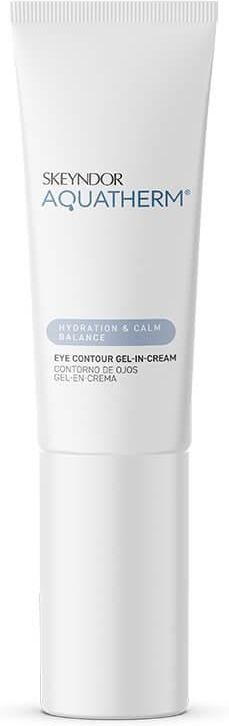 Odkryj nowy Aquatherm, kompletną gamę produktów przeformułowanych, aby zapewnić zastrzyk pielęgnacji, nawilżenia, spokoju i ochrony! Zaprojektowana z ekskluzywnymi formułami, które przywracają równowagę czynników wpływających na stan zdrowia skóry. Doświadcz delikatnej, ale skutecznej pielęgnacji skóry.Delikatny kremowy żel opracowany zmyślą o pielęgnacji delikatnej skóry wokół oczu. Codzienne stosowanie łagodzi i koi skórę wokół oczu, sprawiając że staje się gładsza oraz bardziej jednolita.Pojemność: 15mlDziałanieSkeyndor Aquatherm Hydration & Calm Balance Eye Contour Gel-In-Cream zapewnia kompleksową pielęgnację cienkiej i wrażliwej skóry wokół oczu: zwalcza obrzęki - zmniejsza i zapobiega ich powstawaniu, odżywia - dostarcza minerałów i soli, które nawilżają, wzmacniają odporność i wspomagają procesy fizyczne skóry, nawilża - normalizuje nawilżenie, uzupełnia niedobór wilgoci w skórze i pomaga zatrzymać ją w tkance skórnej, chroni przed wczesnym powstawaniem zmarszczek spowodowanych przesuszeniem, zwiększa komfort skóry - łagodzi, zmniejsza nadwrażliwość, swędzenie, zaczerwienienie, stan zapalny, normalizuje mikroflorę - wzmacnia miejscową odporność, odporność skóry na czynniki zewnętrzne, działa przeciwstarzeniowo - redukuje stres oksydacyjny, chroni przed przedwczesnym starzeniem. Sposób użyciaNanieś na oczyszczoną skórę wokół oczu rano i/lub wieczorem. Delikatnie rozprowadź i pozostaw do całkowitego wchłonięcia.Środki ostrożności: Produkt przeznaczony wyłącznie do użytku zewnętrznego. Przed pierwszym użyciem wykonać próbę uczuleniową. W przypadku wystąpienia reakcji alergicznej natychmiast przerwać stosowanie i skonsultować się z lekarzem. Stosować zgodnie z instrukcją i zaleceniami na opakowaniu. Nadmierne lub niewłaściwe użycie może prowadzić do podrażnień. Unikać bezpośredniego kontaktu z oczami i błonami śluzowymi. W razie dostania się do oczu lub na śluzówki natychmiast przemyć dużą ilością wody. Nie stosować na uszkodzoną lub podrażnioną skórę. Przechowywać w chłodnym, suchym miejscu, z dala od bezpośrednich źródeł ciepła i światła słonecznego. Przechowywać poza zasięgiem dzieci. SkładnikiSkładniki aktywne: Kompleks termalny z minerałami morskimi - dostarcza skórze minerałów i pierwiastków śladowych dla optymalnego funkcjonowania. Poprawia nawilżenie, tworzy rezerwę wilgoci oraz pomaga ją zatrzymać w skórze. Likwiduje odwodnienie, suchość, podrażnienia, zaczerwienienia, stany zapalne, łagodzi swędzenie. Poprawia procesy fizyczne w skórze: nasycenie i transport tlenu, metabolizm. Ceramidy - składniki odbudowujące naturalną barierę ochronną skóry. Przywracają skórze harmonię i działają regenerująco. Oligosacharydy prebiotyczne - działają odżywczo oraz odbudowują naturalną barierę ochronną skóry. Dihydroawenantramid D - zapewnia ochronę antyoksydacyjną, niweluje odczucie świądu, zapewnia długotrwały komfort skóry, łagodzi suchość skóry, w widoczny sposób redukuje zaczerwienienia. Alfa-Bisabolol - wykazuje silne działanie przeciwzapalne, łagodzące i wyciszające. Przyspiesza proces gojenia, koi podrażnioną i wrażliwą skórę. Beta-Glukan - składnik, który łagodzi podrażnienia, przyspiesza gojenie, głęboko nawilża i chroni skórę przed utratą wilgoci, stymuluje produkcję i chroni zasoby kolagenu w skórze, wspomaga regenerację uszkodzonej czy suchej, łuszczącej się skóry, redukuje zmarszczki oraz zwiększa sprężystość skóry. 4-t-butylocykloheksanol - substancja łagodząca podrażnienia o działaniu chłodzącym. Zmniejsza uczucie swędzenia i pieczenia Ekstrakt z zielonych alg chlorella, ekstrakt z gryki, kofeina - pomagają usunąć nadmiar wody, poprawiają krążenie płynów w tkankach skóry, eliminują i zapobiegają obrzękom. Mają wysoki potencjał antyoksydacyjny - chronią przed przedwczesnym starzeniem się skóry.
