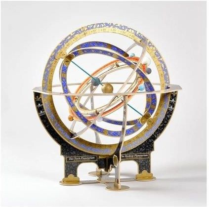 Co to jest Sfera Armilarna: Sfera Armilarna to klasyczny przyrząd astronomiczny obrazujący ruch ciał niebieskich na nieboskłonie. Znany i wykorzystywany od starożytności obowiązkowy rekwizyt astronoma widoczny na każdym pomniku Kopernika, który w jego centrum umieścił zamiast Ziemi Słońce. Opis: Ten zestaw do samodzielnej budowy klasycznej sfery armilarnej pozwoli Ci zobaczyć i zrozumieć m.in. pozorny ruch Słońca, księżyca, planet i gwiazd stałych dookoła Ziemi. Będziesz mógł dokonać symulacji dla każdego dnia roku i każdego punkty na Ziemi. Główne funkcjonalności: ruchomy południk obrazujący wszystkie szerokości geograficzne ekliptyka z naniesionymi datami, znakami zodiaku i konstelacjami równik z naniesioną podziałką godzin, czasami trwania zmierzchu i świtu orbita księżyca z ruchomymi węzłami i wskaźnikami zaćmień Sfera Armilarna to nie tylko instrument dydaktyczny ale również piękny i dekoracyjny model. Wymiary po złożeniu: wysokość 34 cm; średnica 33 cm Zawartość zestawu: 16 arkuszy sztancowanego kartonu o grubości 0,65 mm; sztancowanie pozwala na wyjęcie elementów bez wycinania 3 drewniane osie, 150 x 2,5 mm (oś niebieska, 1 rezerwa) 3 krążki z PVC, ø 8 x 2,7 mm, 0,5 mm grubości (łożyska sfery niebieskiej, 1 rezerwa) 2 drewniane półkule, ø 25 mm, z otworem 2,5 mm (kula centralna - Ziemia) 4 metalowe szpilki, 13 x 1,25 mm (uchwyty ekliptyki) 2 kule z gumy piankowej, ø 20 mm ze szczeliną (Słońce i Księżyc) 5 kul z gumy piankowej, ø 13 mm ze szczeliną (Merkury, Wenus, Mars, Jowisz i Saturn) polskojęzyczna instrukcja