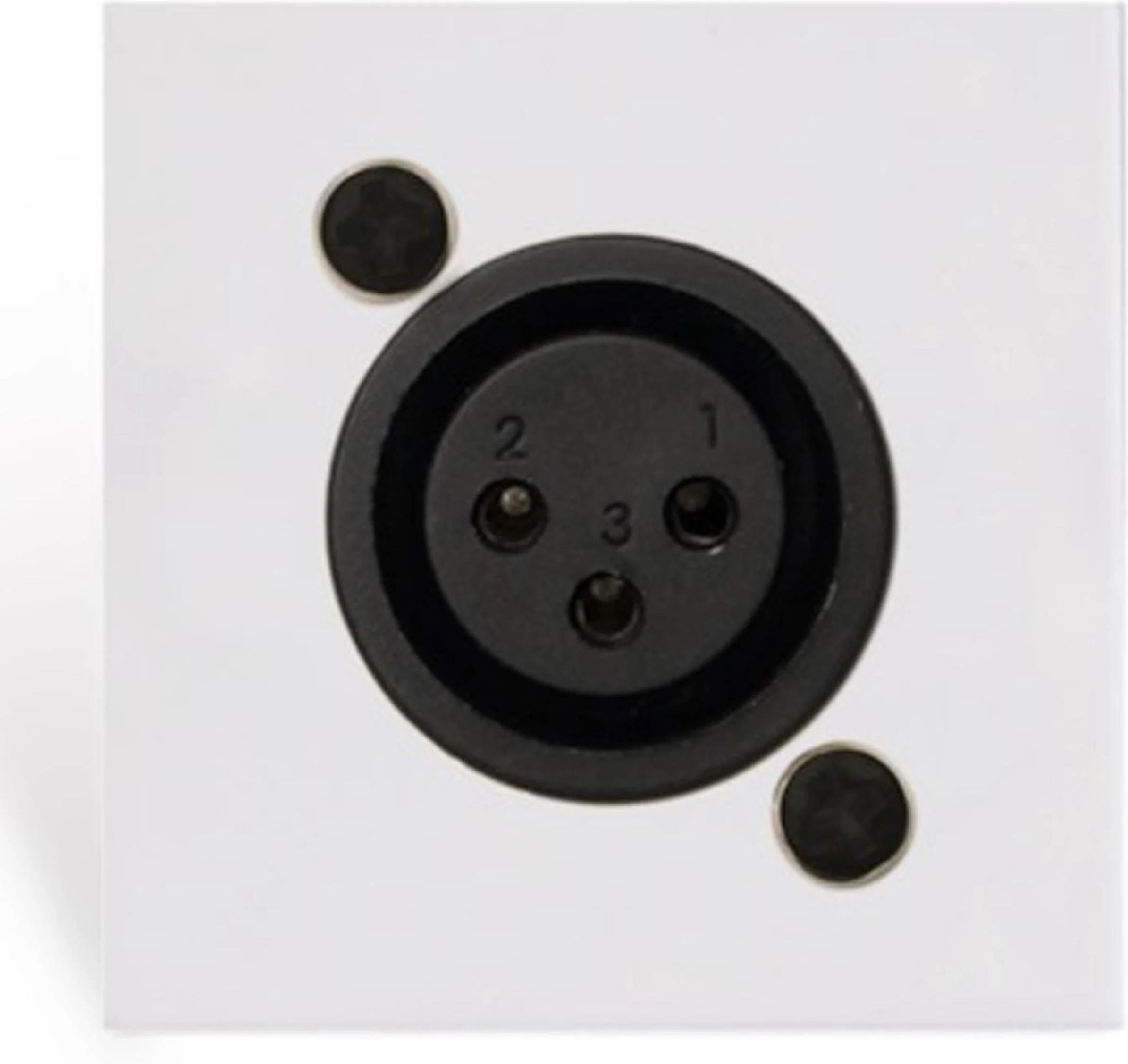 Płyta przyłączeniowa z żeńskim, 3-pinowym złączem XLR przeznaczona do stosowania ze standardowymi ramkami montażowymi i osłonami w rozmiarze 45x45 mm.