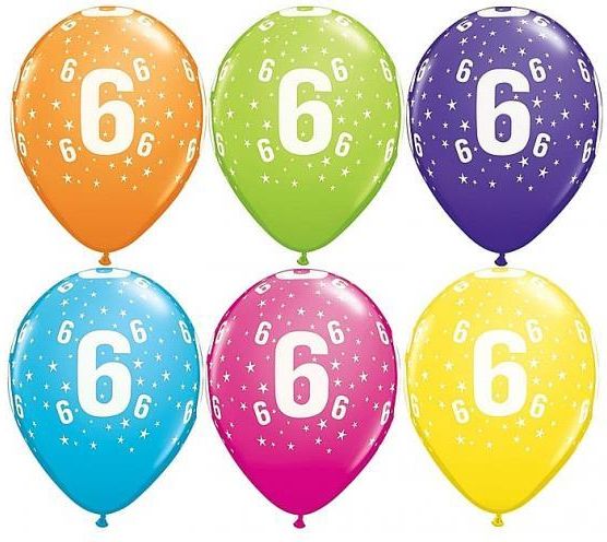 BALONY LATEKSOWE Z NADRUKIEM "6" Balony Qualatex wykonane są w 100% z naturalnego, elastycznego lateksu. To gwarancja najlepszej światowej jakości! Wymiar balonów w calach: 11 Wymiar balonów w centymetrach: 28 Nadruk: "6" i białe gwiazdki. Kolor balonów: kolorowe. Balony przeznaczone są do napełnienia powietrzem lub helem. W opakowaniu znajduje się 6 szt.