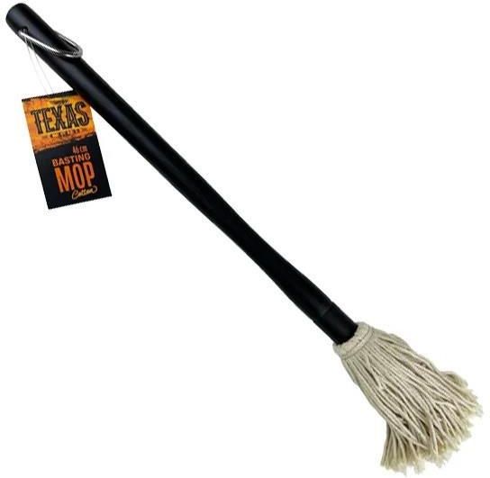 Bawełniany pędzel do grilla „mop” BBQ marki Texas Club przeznaczony jest do równomiernego smarowania grillowanych mięs olejem lub glazurą. Dzięki przesuwanym sznurkom jest szczególnie przydatny do glazurowania mniejszych produktów nierównej powierzchni (np. skrzydełek kurczaka). Tym pędzlem będzie można szybciej glazurować większą ilość mięsa. Produkt ma solidną, długą rączkę i metalowy uchwyt do zawieszania.